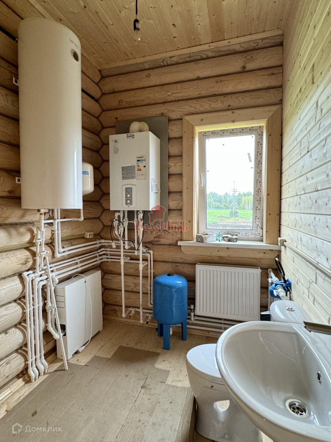 Отопление - газовый котел с бойлером косвенного нагрева. Теплый пол на водяном контуре от газового котла, батареи в каждой комнате.
