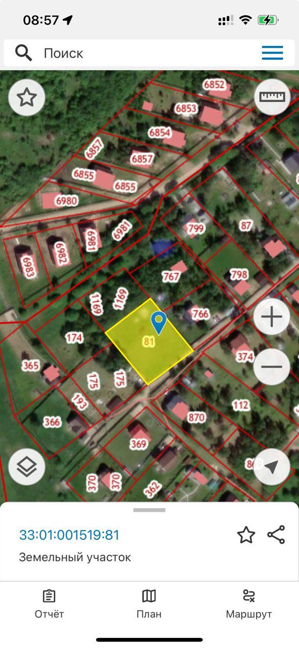 ОБ ОБЪЕКТЕ: Земельный участок 20 соток квадратной формы, ровный, слегка под склон ( данный фактор обеспечивает сухость ), отмежёван, границы установлены. Огорожен забором с двух боковых сторон забором от соседей ( с одной стороны деревянный забор на металлических столбах, с другой проф.лист на железном каркасе ) а также с фасадной стороны решётчая сетка на столбиках. Категория земель: Земли населенных пунктов. Вид разрешенного использования: личное подсобное хозяйство ( возможно строительство жилого дома, прописка и т.д. ). Кадастровый номер земельного участка - 33:01:001519:81