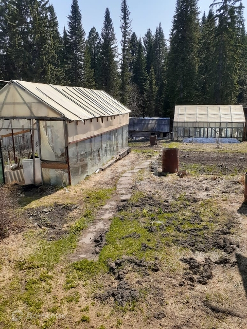 Дом двухэтажный, 7х6 деревянный. Во дворе имеется 2 теплицы размерами 4х8, капитальный гараж, баня, помещение для хранения садового инвентаря.