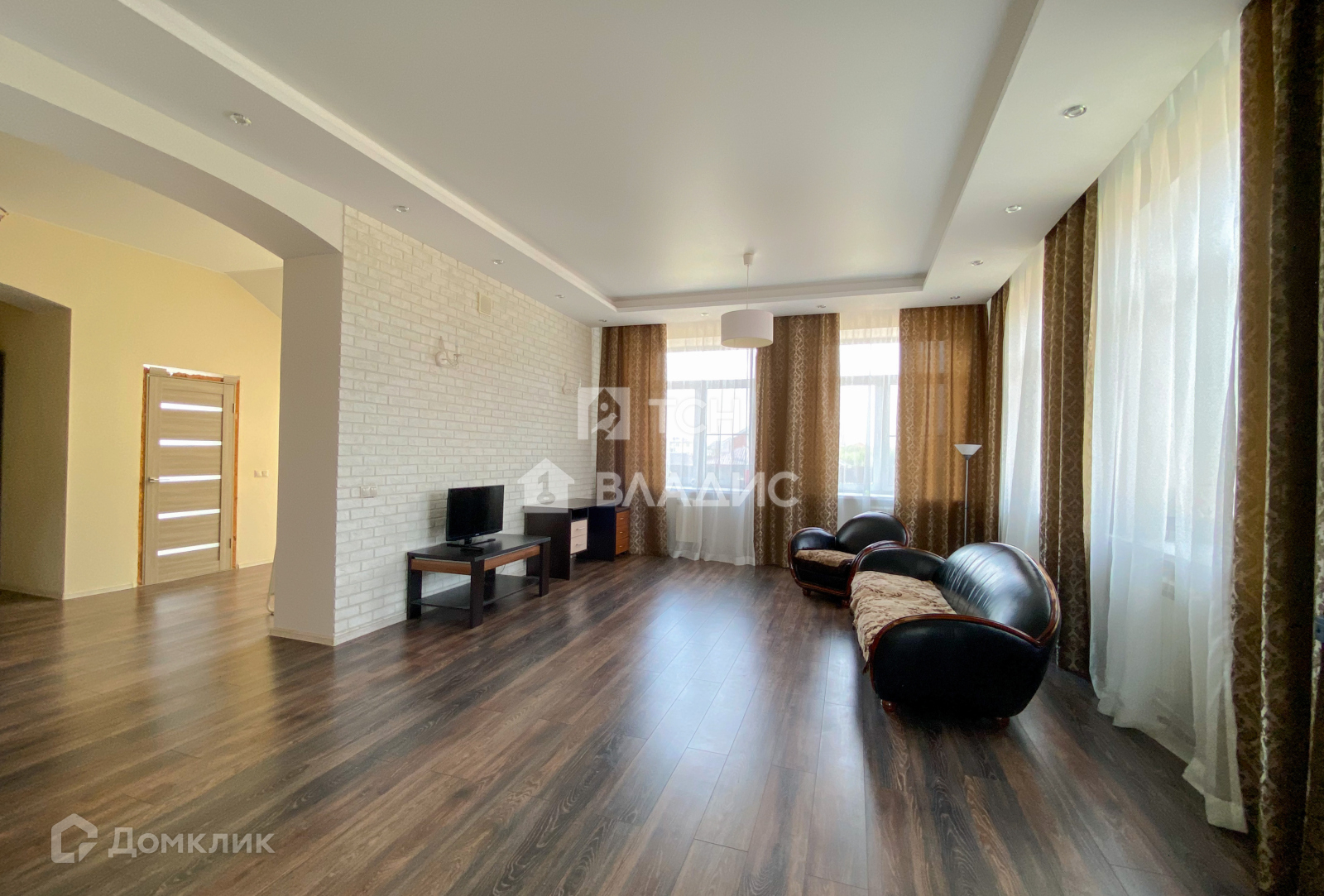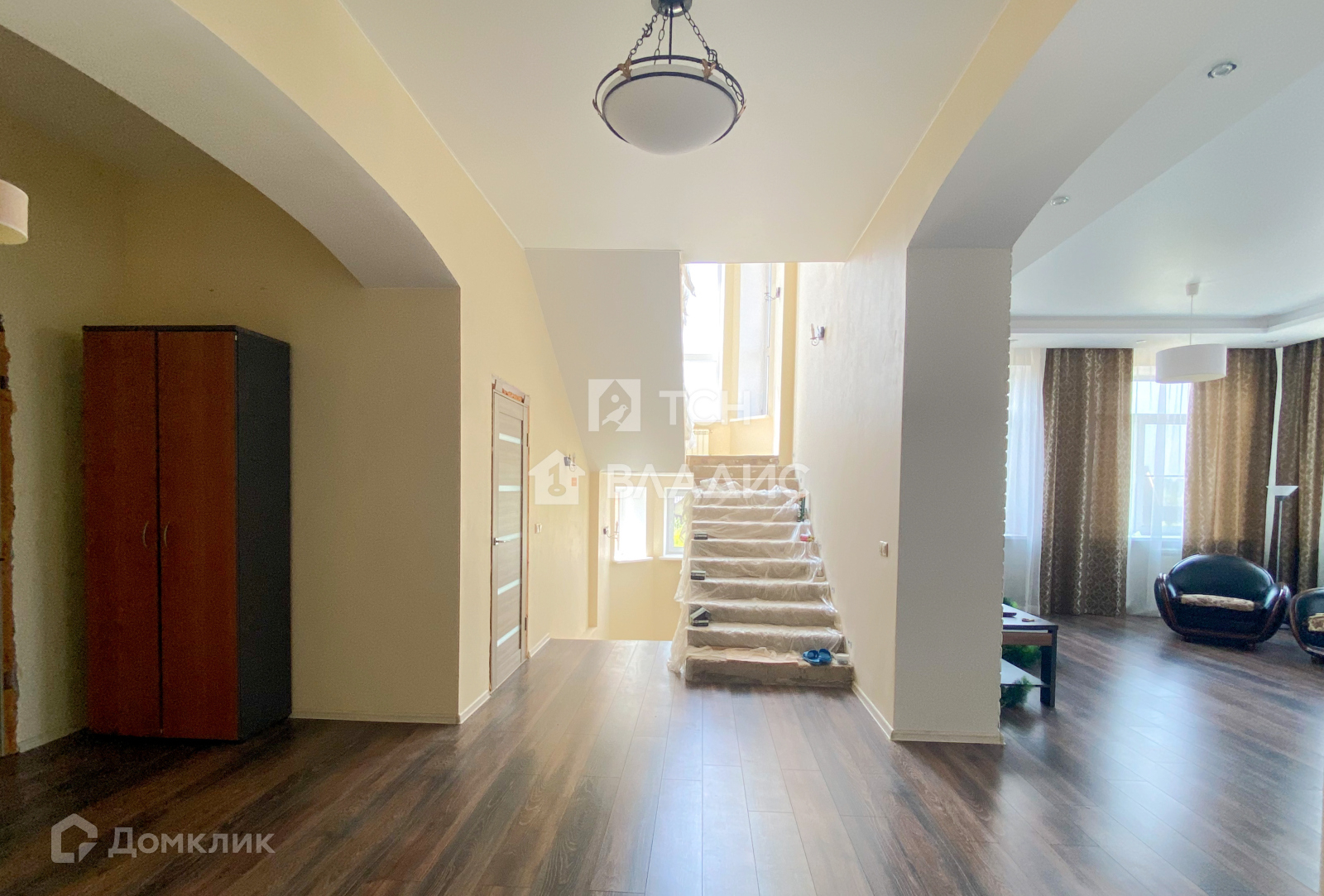 На первом этаже шикарная, просторная кухня-гостиная, две изолированные комнаты и санузел.