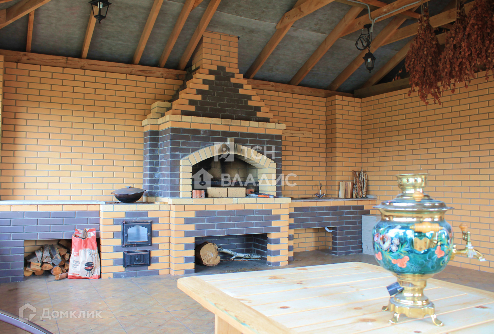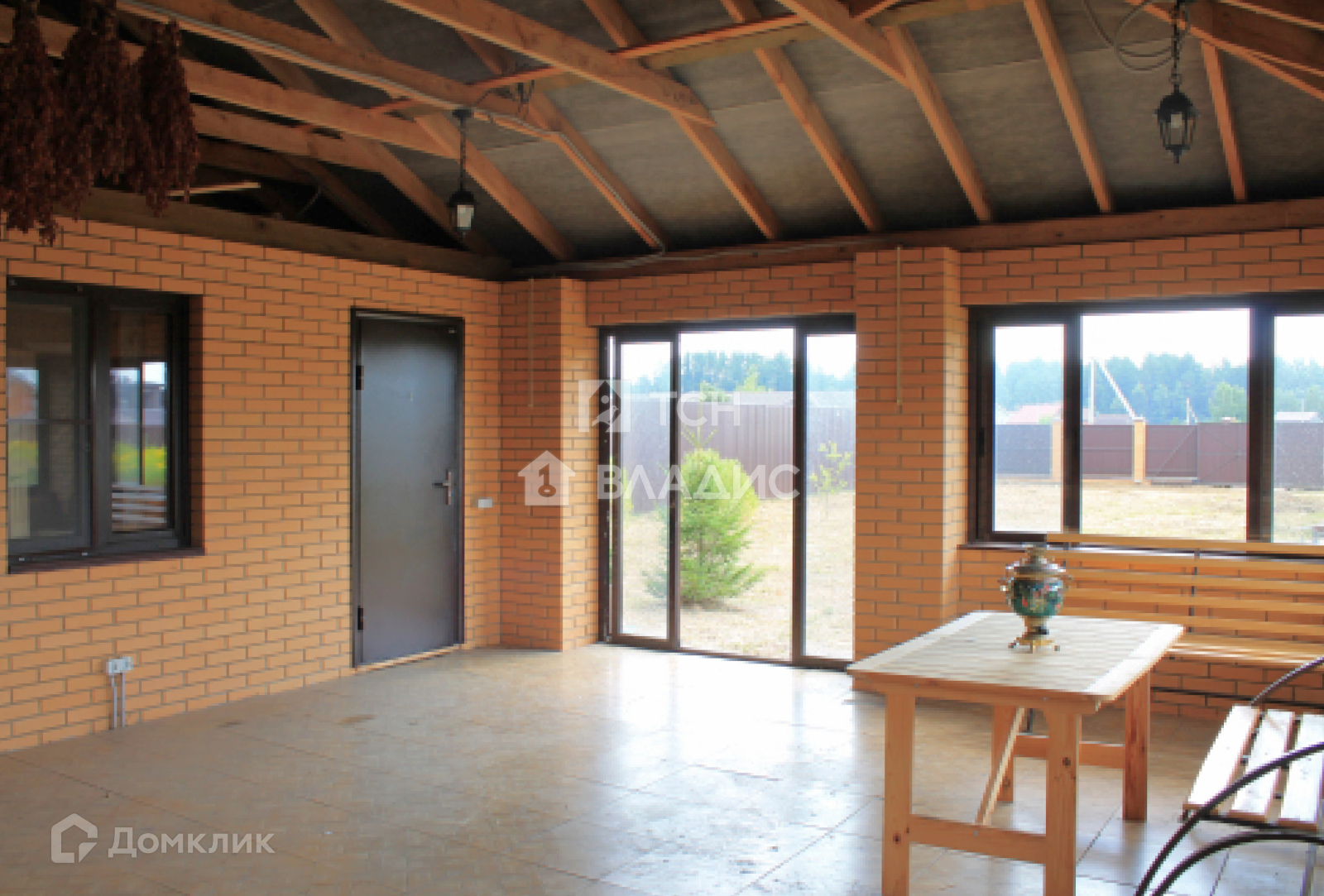 На участке расположена добротная, кирпичная баня с шикарной зоной отдыха.