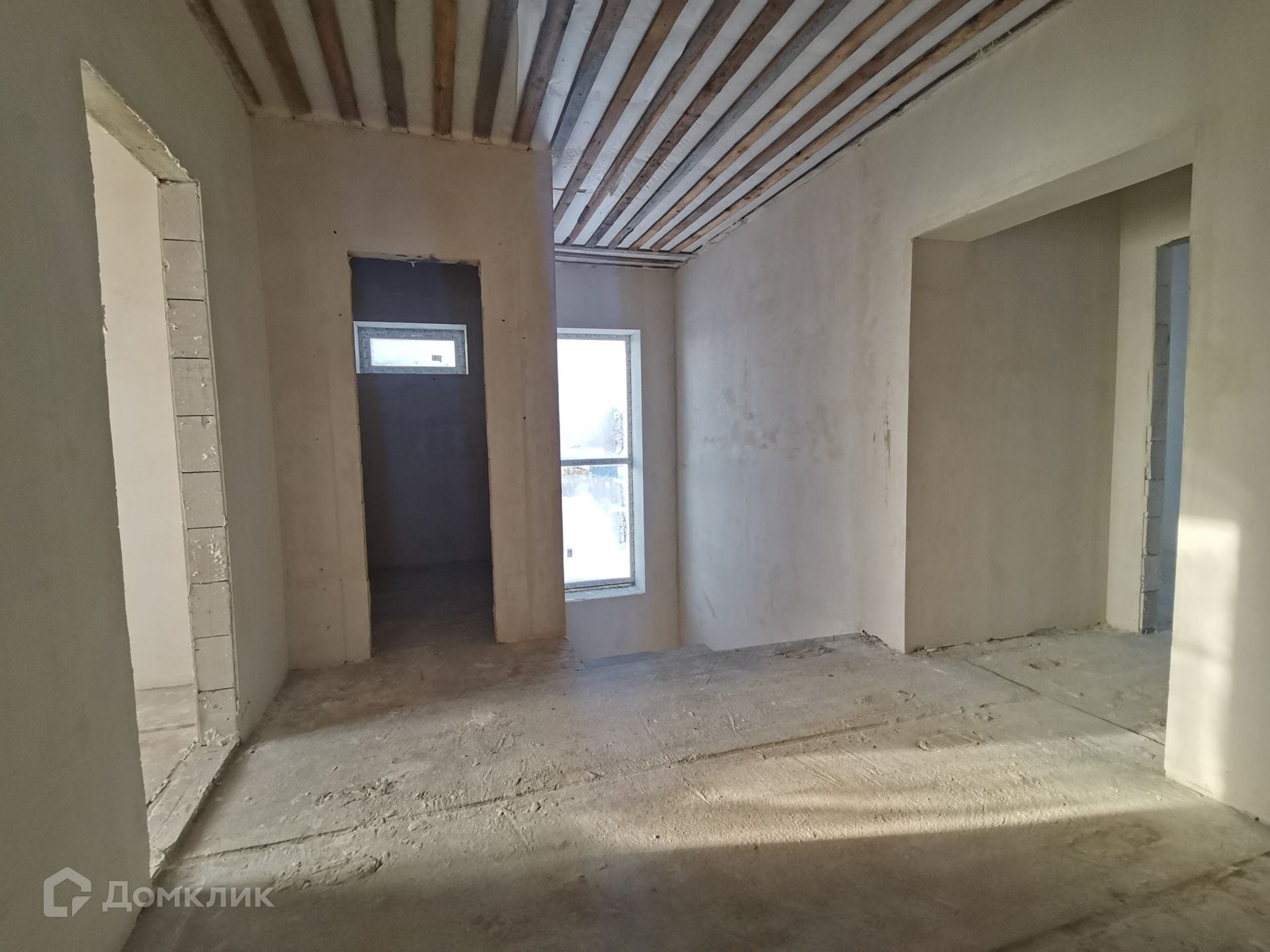 В доме полностью оштукатурены все стены перегородки и откосы.