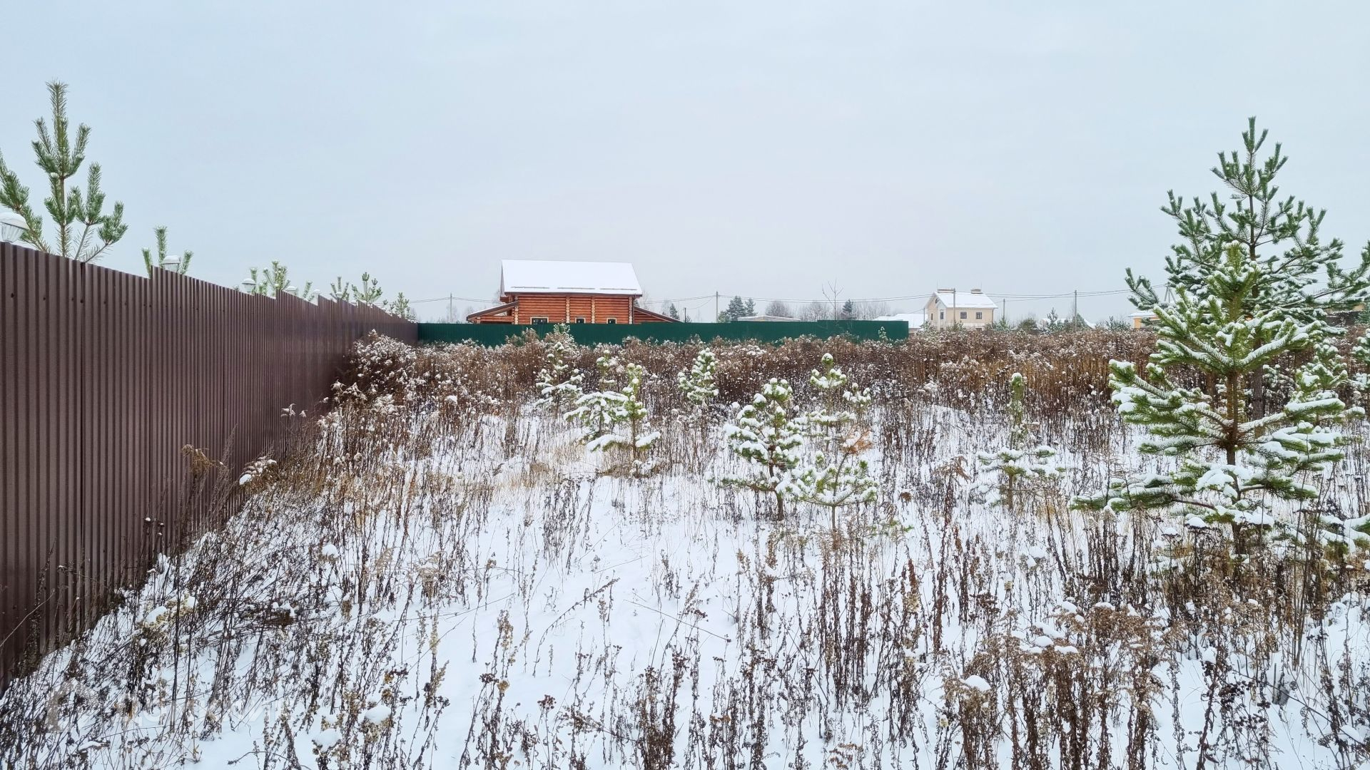 Участок правильной прямоугольной формы, огорожен с двух сторон забором из профнастила.