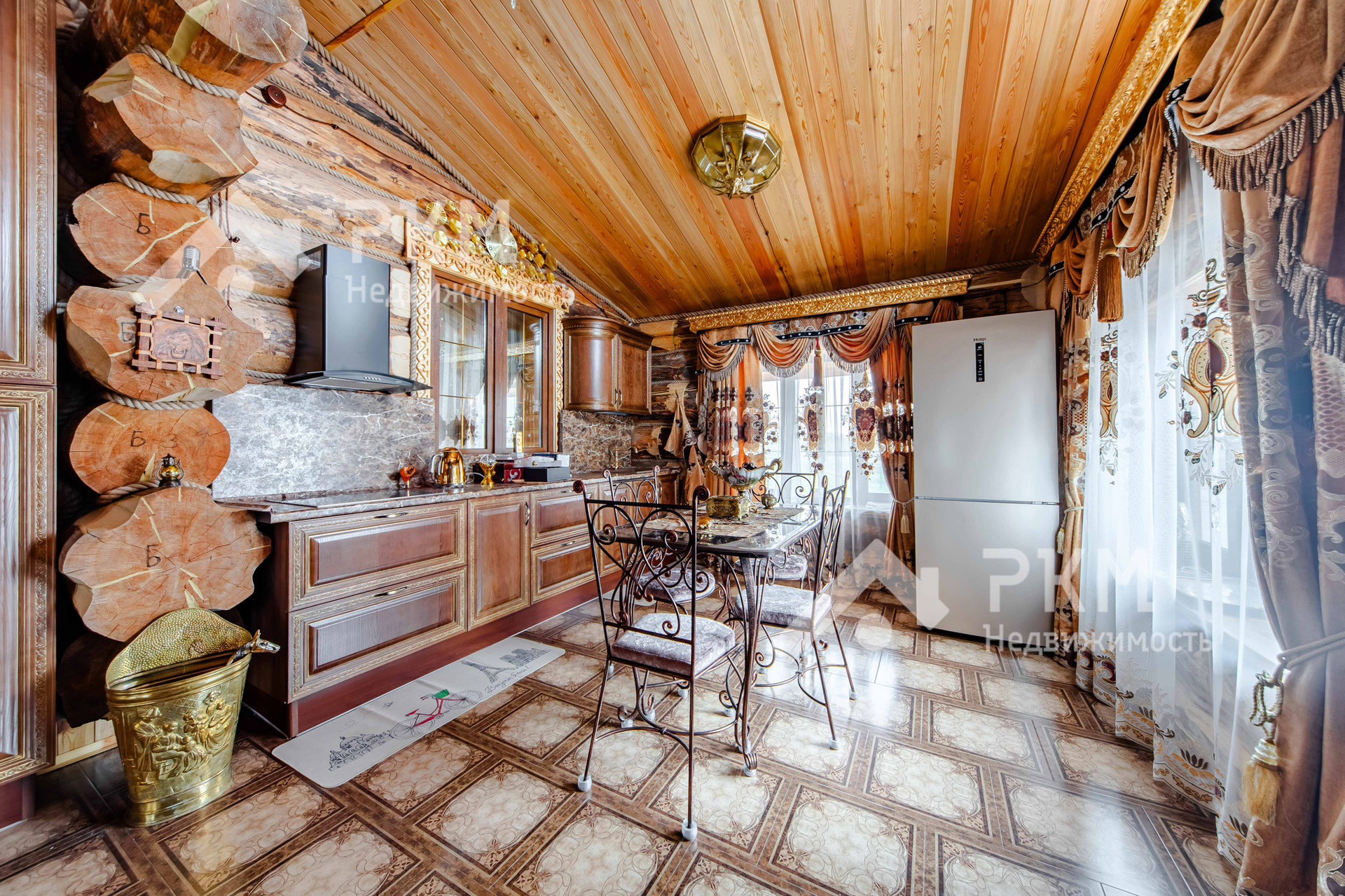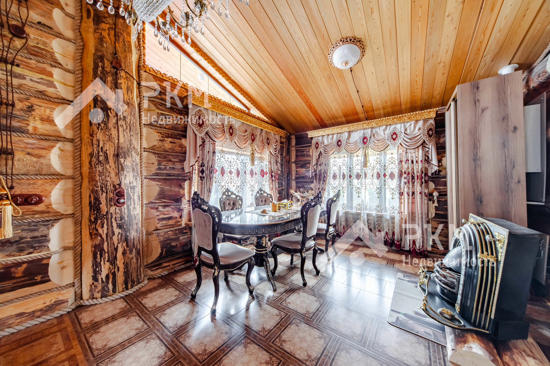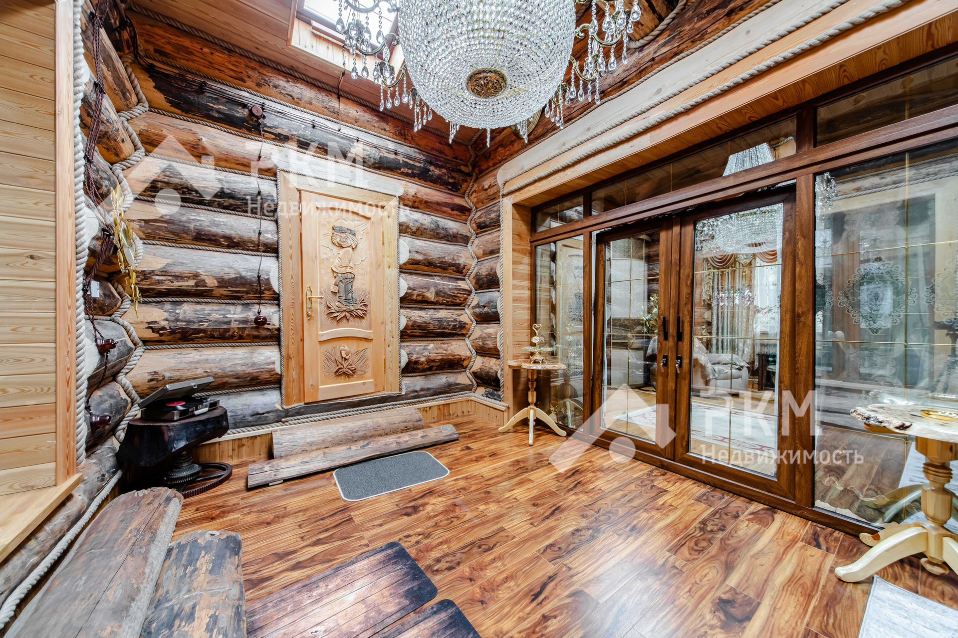 - При строительстве коттеджа использовались экологически чистые натуральные материалы. Внутреннее пространство спланировано максимально функционально.