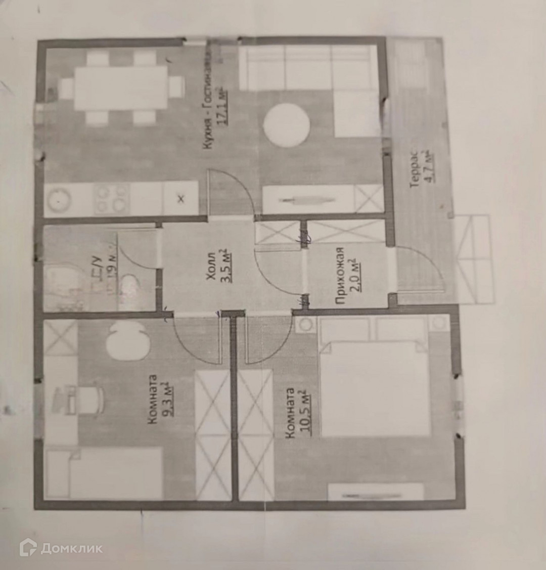 Общая площадь 56 м2