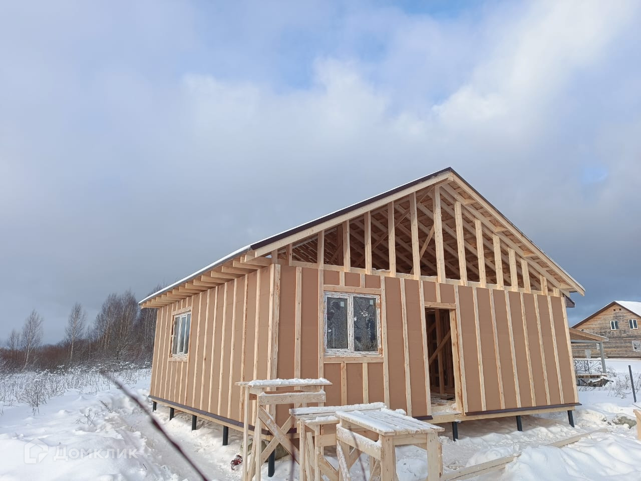 Арт. 61052564 Компания "Вектор-Недвижимость" предлагает Вашему вниманию каркасный дом площадью 56 квадратных метров,  подключенный ко всем коммуникациям, расположенный в живописном, активно развивающемся коттеджном поселке "Вятчинки" в 20 минутах езды от центра города.