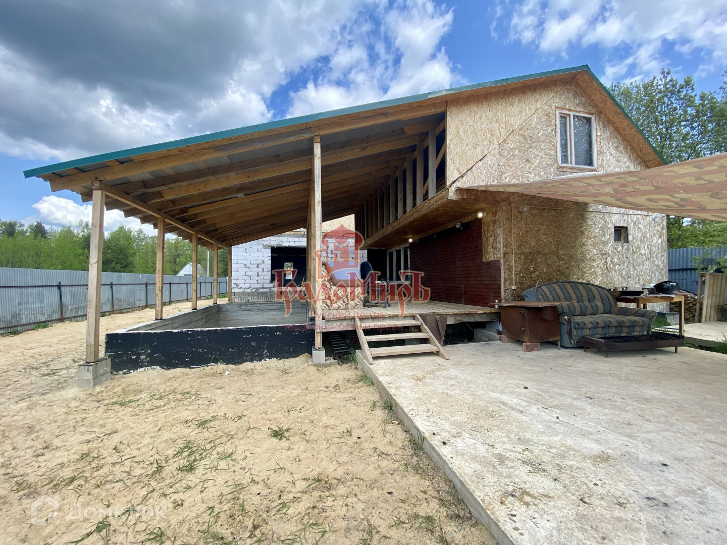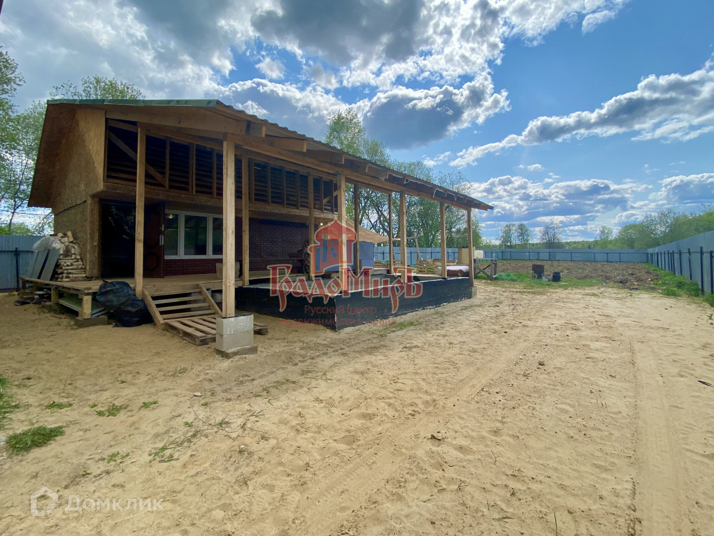 На участке расположен дом из газобетона (зарегистрирован), действующая баня с жилым вторым этажом.  Участок огорожен по периметру, имеются ворота для проезда автомашины.
