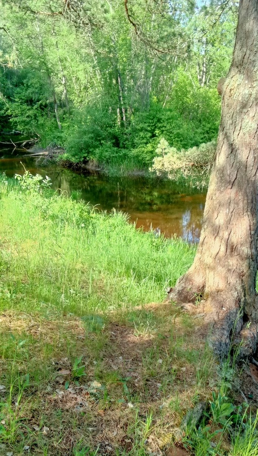 На участке автодом для круглогодичного проживания (кондиционер, отопление, зимний сан.узел). Соседи вокруг живут постоянно. Эл-во 15кВт. Река, сосновый лес, на участке, яблоня,  сливы, малинник.