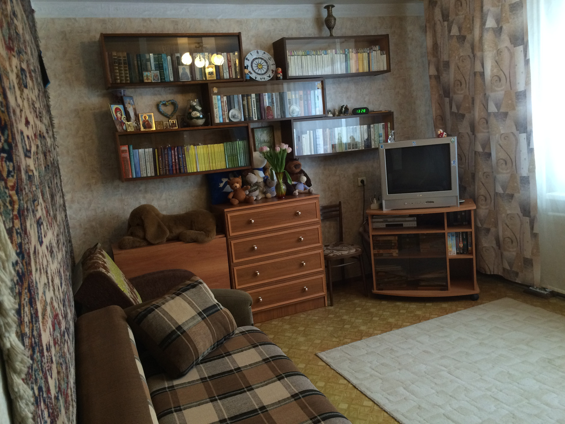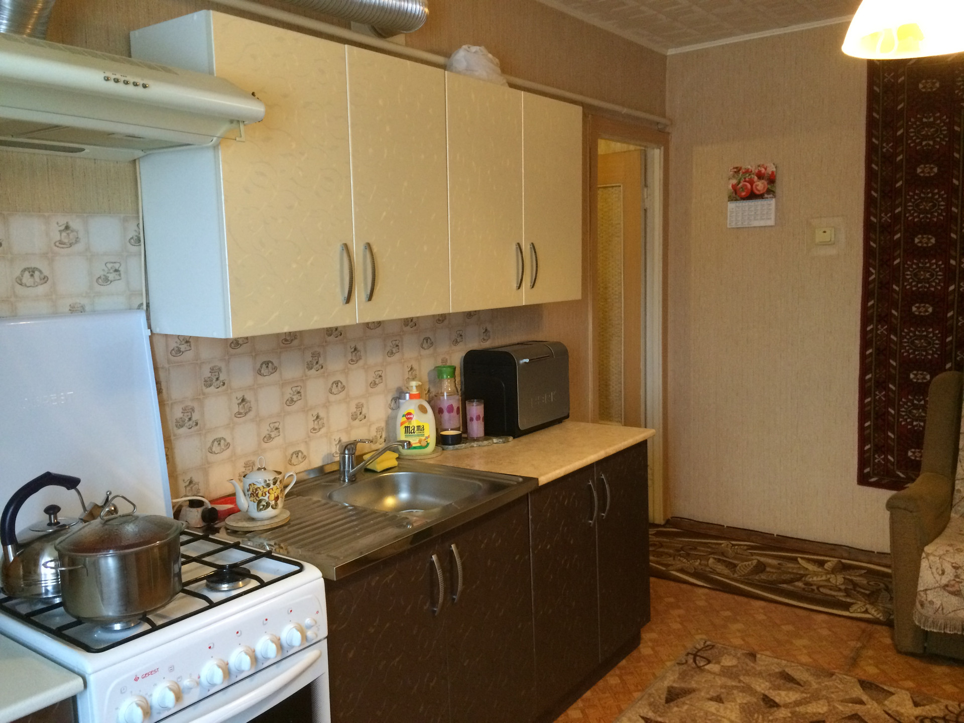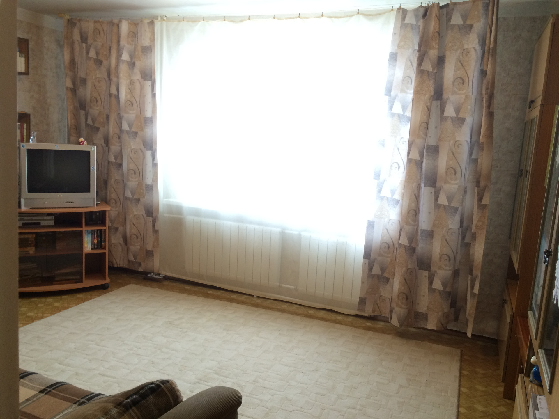 Квартира светлая, теплая, этаж высокий первый, большая кухня с выходом на лоджию (застеклена), стоят новые батареи (усиленные), новые окна, зимой горячая вода центральная, летом - бойлер, железная (двойная) дверь, стояки меняли в 2014г., подвал сухой. Ремонт обычный. Автобусы ходят регулярно, до Волхова 20 минут. ДоЖ/д станции 500 метров.