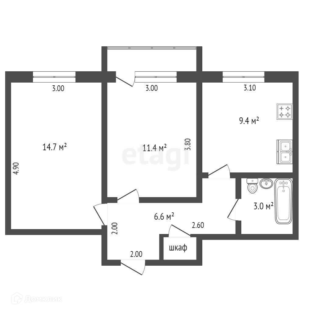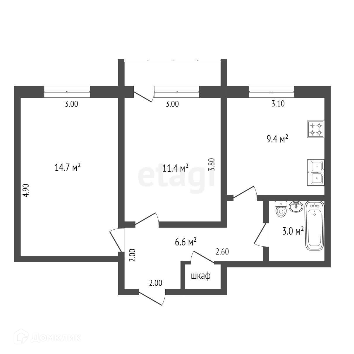 Общая площадь 47.4 м2