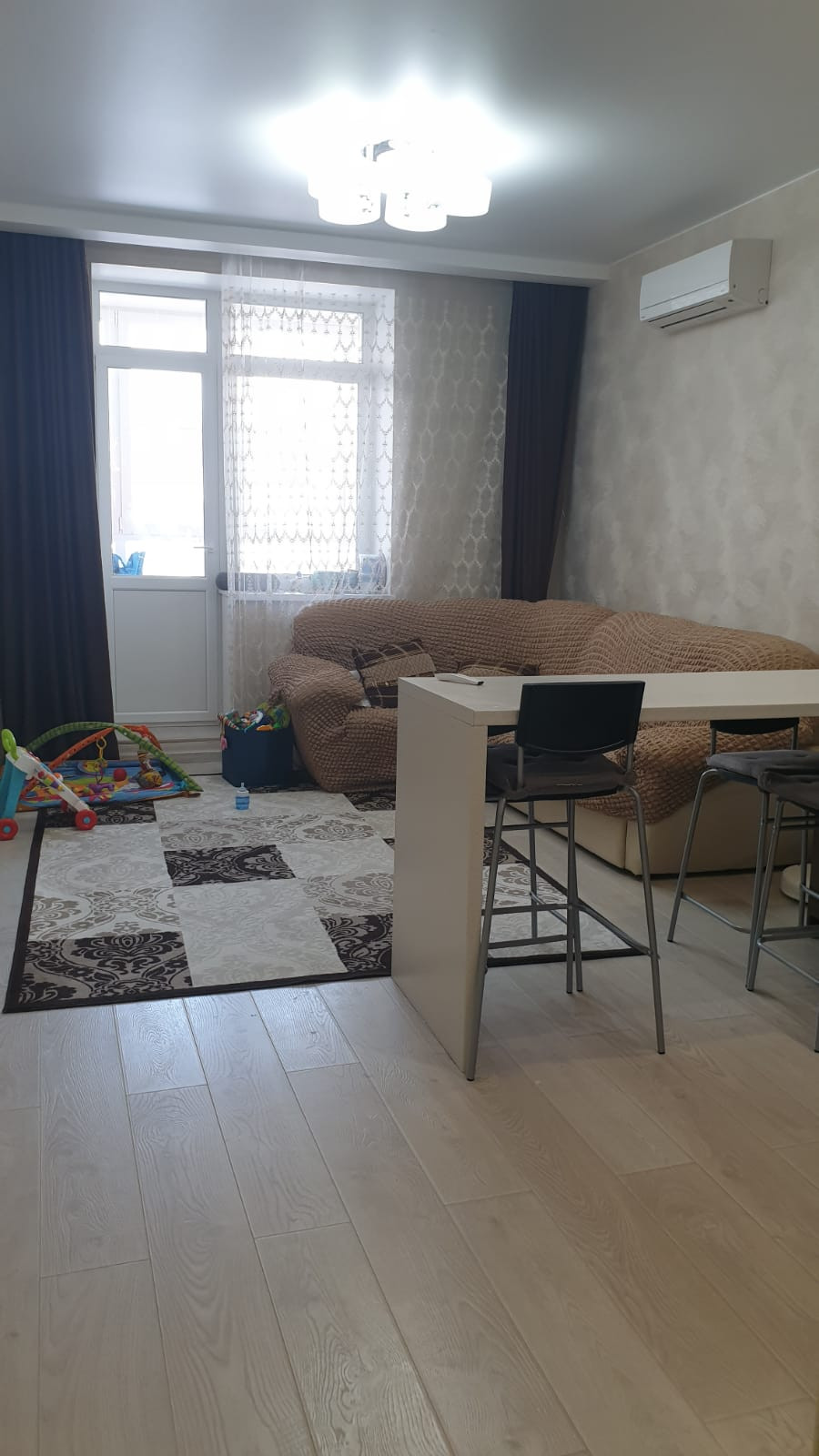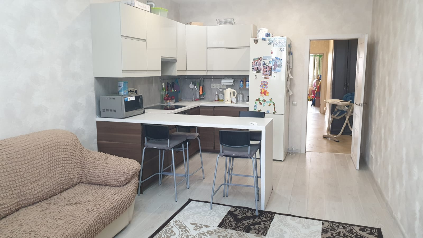 Продается большая двухкомнатная квартира (евротрешка) в ЖК Малая Истра, Истринского района. Квартира распашенка, расположена на 3 этаже кирпичного дома. Общая площадь квартиры 75,9 кв.м., большая гостиная с зоной кухни - 20,7 кв.м., две комнаты - 20 и 16 кв.м., сан/узел, гардеробная, две лоджии. Сделан качественный ремонт, стильная кухня, обставлена мебелью, есть кондиционер, техника, фильтры на воду. Один взрослый собственник. В самом микрорайоне активно идет заселение, в шаговой доступности магазины, аптека, автобусная остановка. До МКАД всего 35 км по Волоколамскому или Новорижскому шоссе.