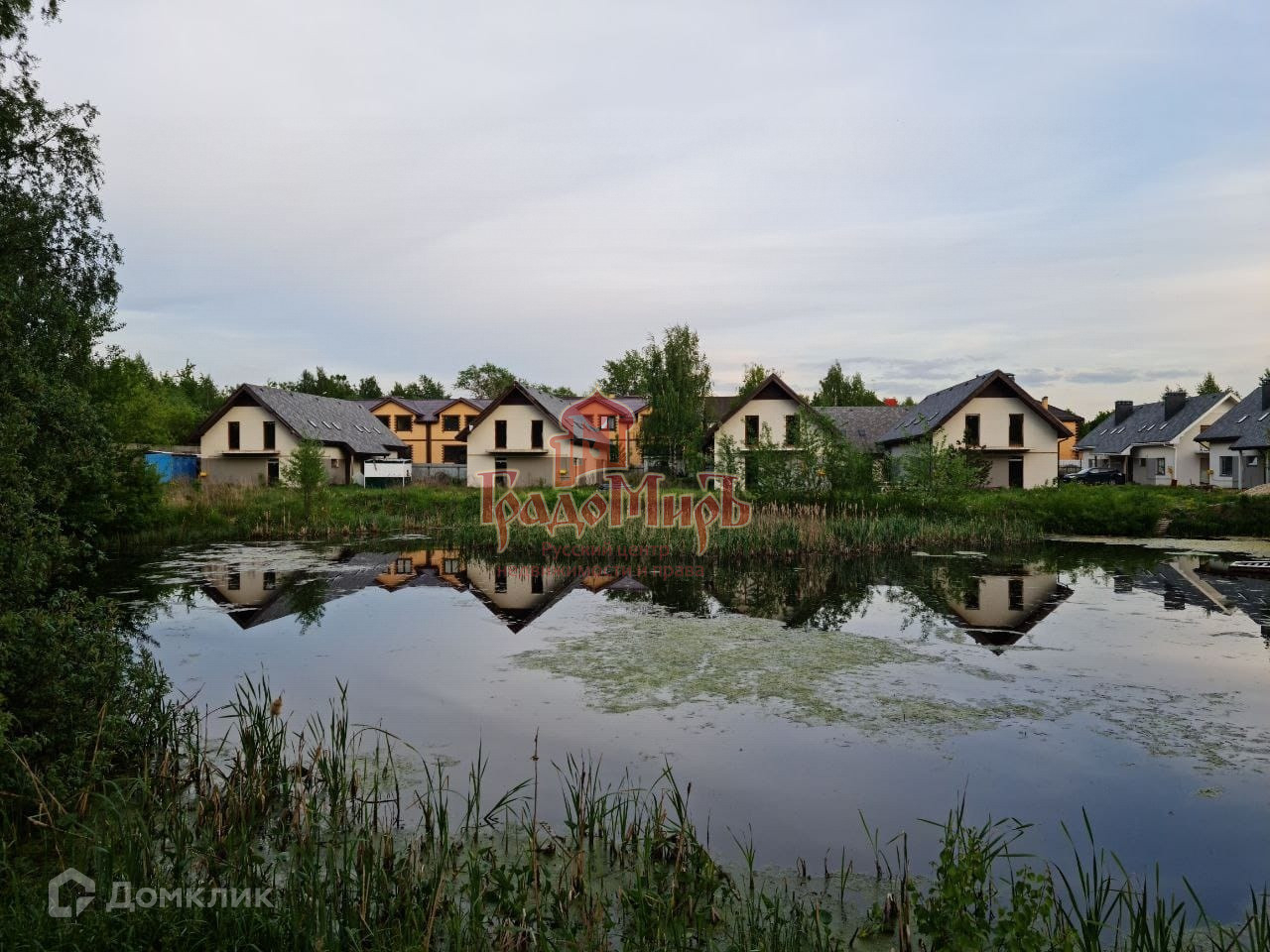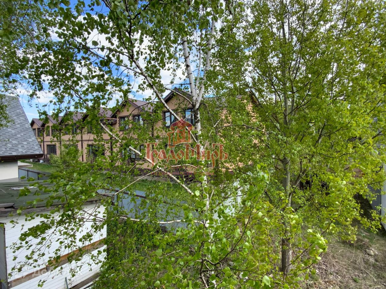 Рядом с таунхаусом есть живописное озеро, участок в окружении зеленого массива.