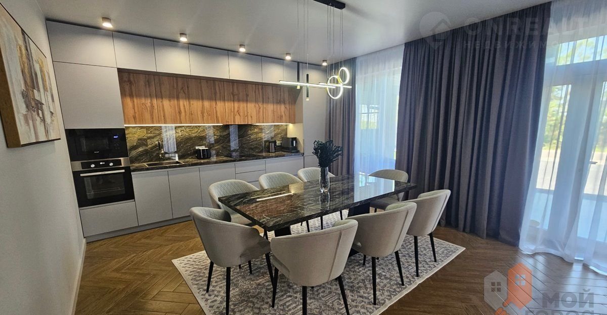 · Просторная кухня с современной встроенной техникой — идеальное место для кулинарных экспериментов и душевных разговоров в кругу семьи.