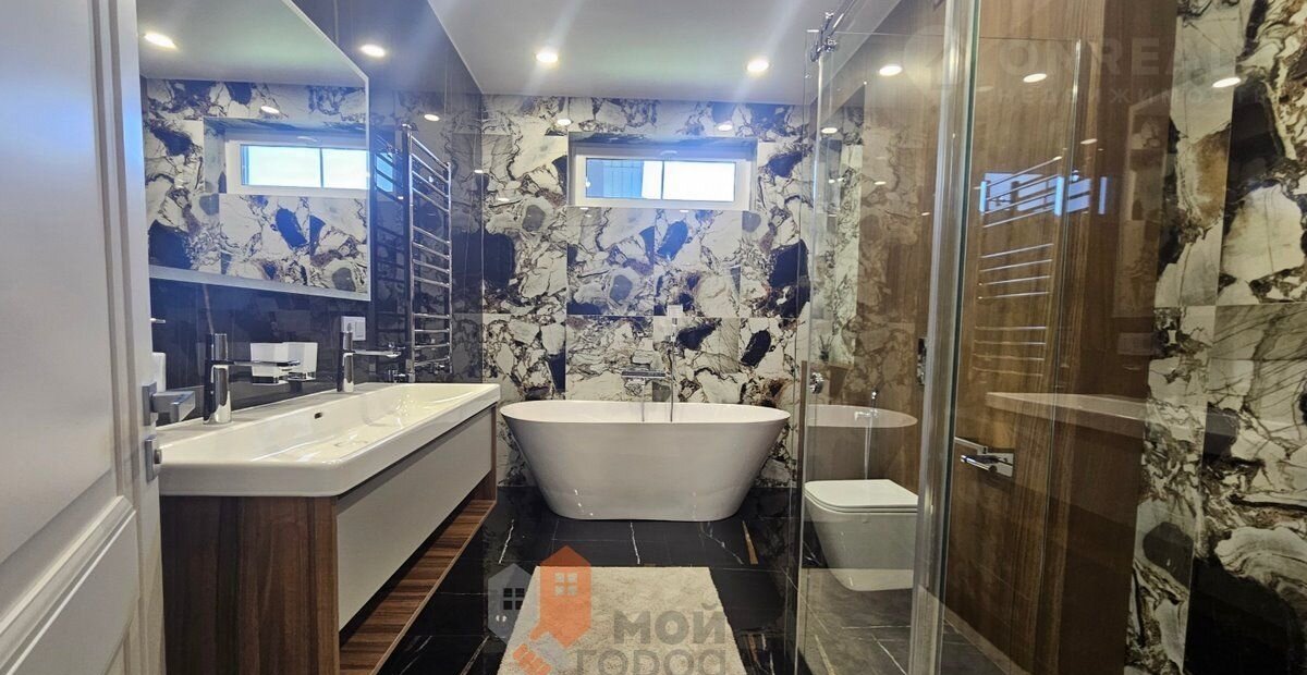 · Современные отделочные материалы: тщательно подобраны напольные покрытия, освещение, мебель и предметы интерьера. Каждый элемент гармонично сочетается друг с другом, подчеркивая изысканность пространства.