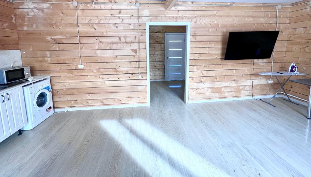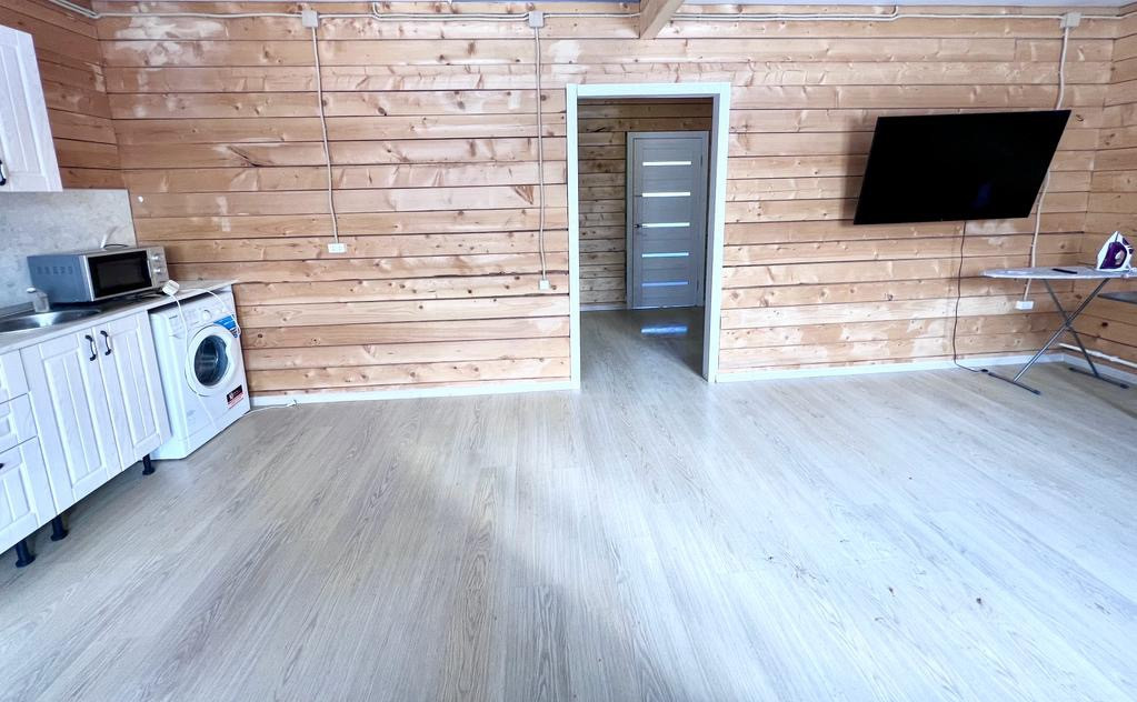 Планировка кухня-гостиная, две изолированные комнаты, с/у современный, просторный прямоугольный холл. Имеется открытая терраса с выходом на задний двор для удобства. Так есть второй этаж под освоение, постелен черновой пол. При желании за счет этого можно значительно увеличить полезную площадь дома.
