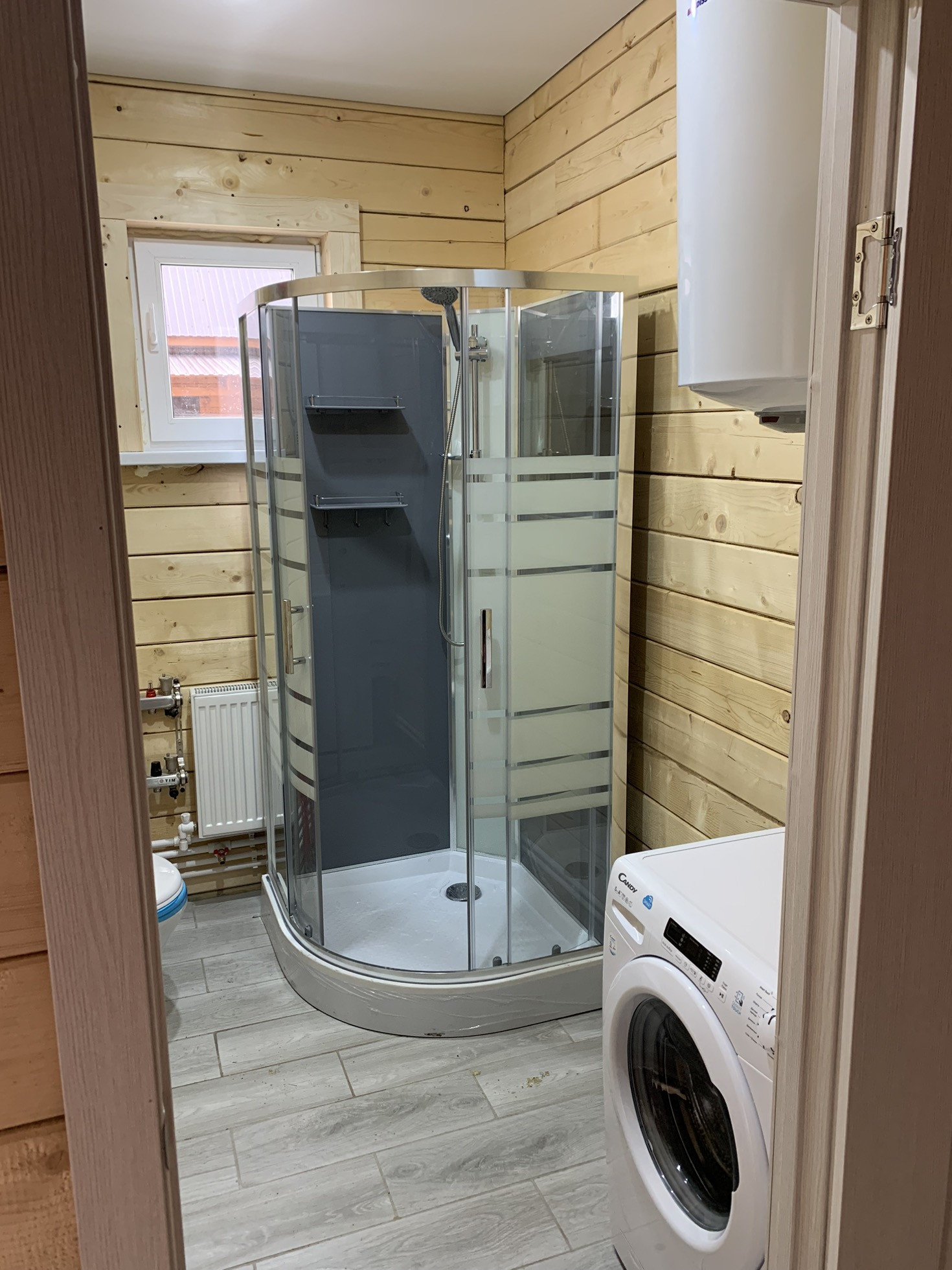Оставляем душевую кабину, водонагреватель на 80 литров.