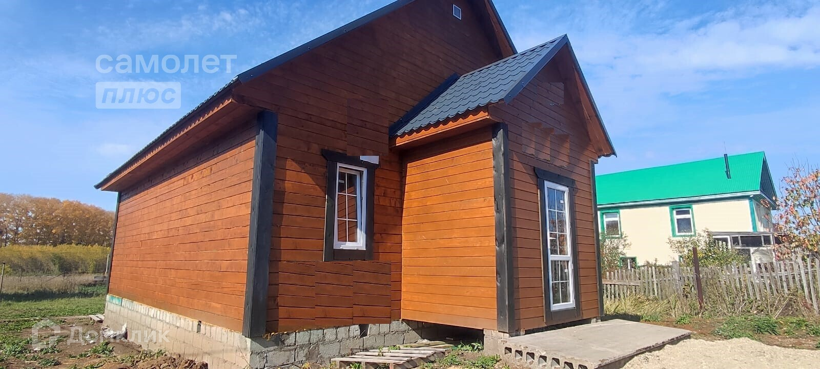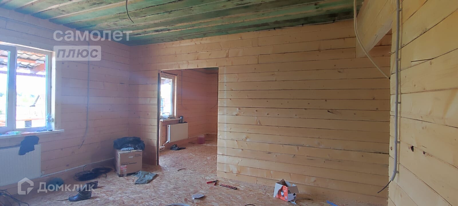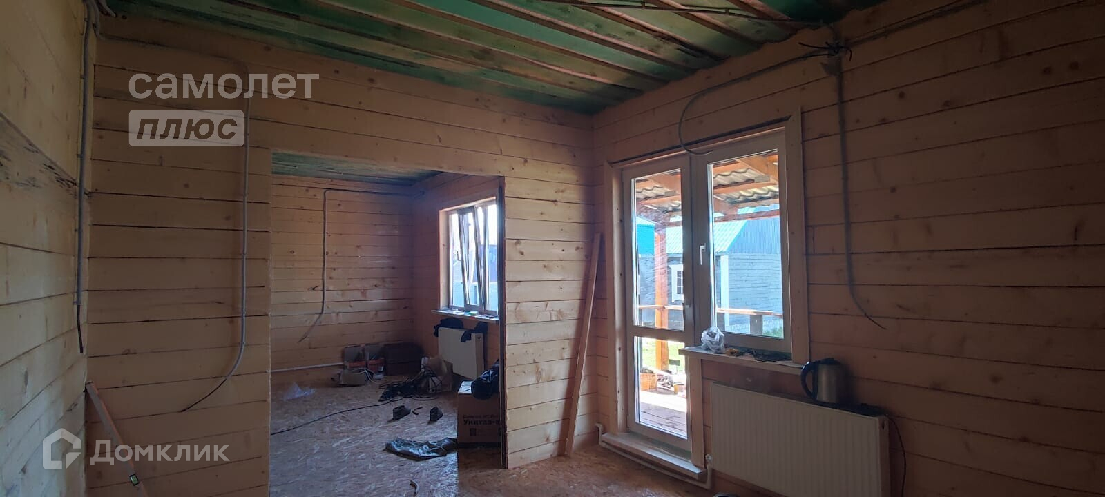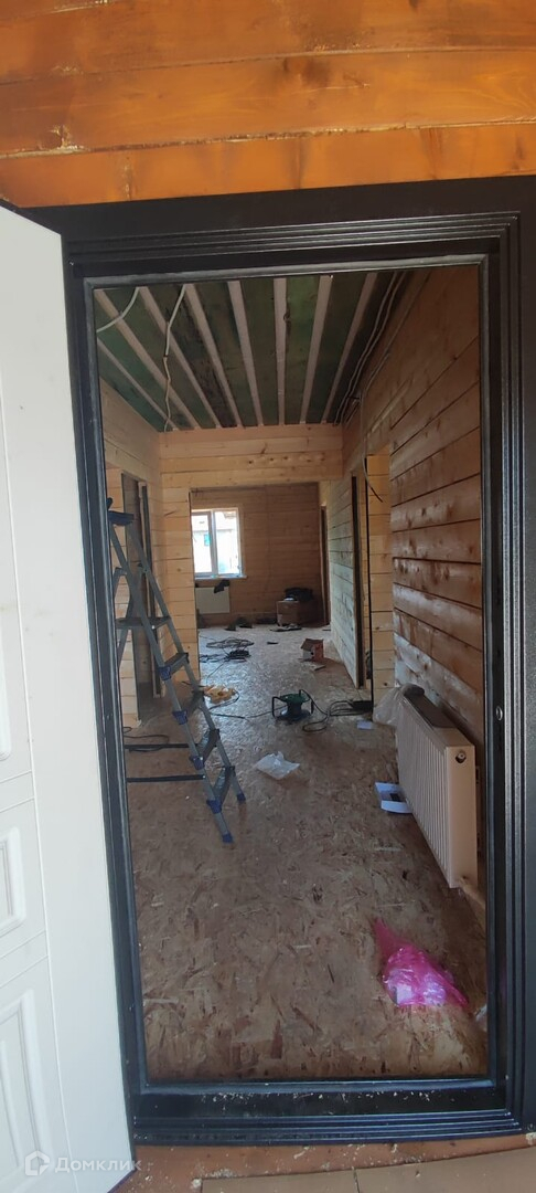 - Материал стен брус, фундамент монолитный выложен цоколь, потолок имитация бруса, полы плиты ОСБ, дверь металлическая с терморазрывом.