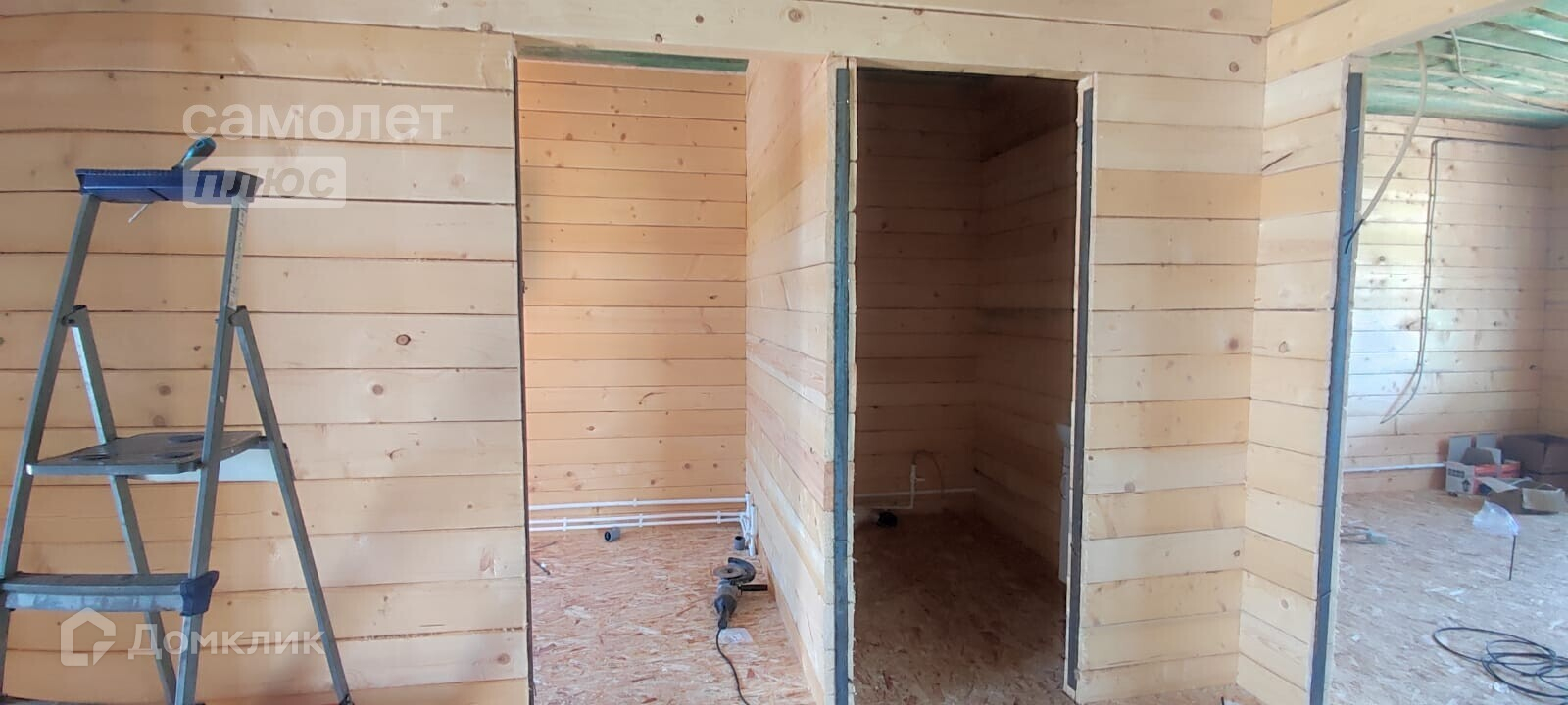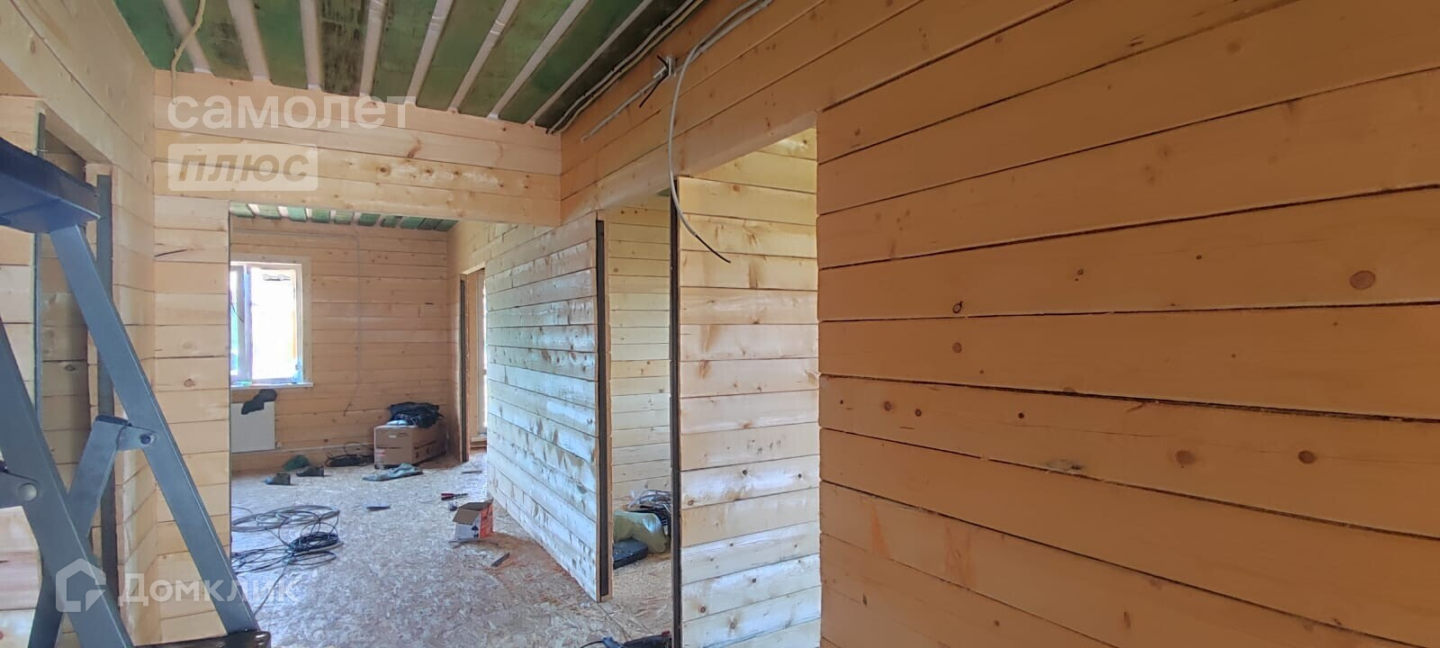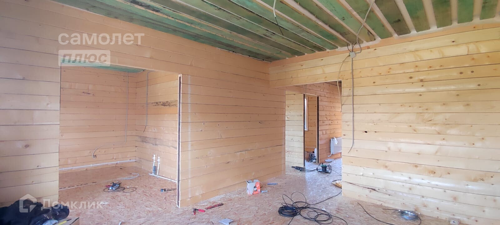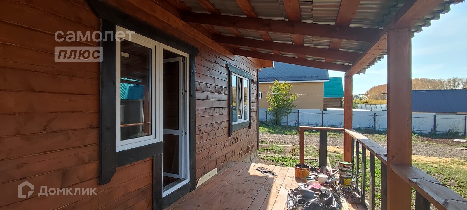- Материал стен брус, фундамент монолитный выложен цоколь, потолок имитация бруса, полы плиты ОСБ, дверь металлическая с терморазрывом.