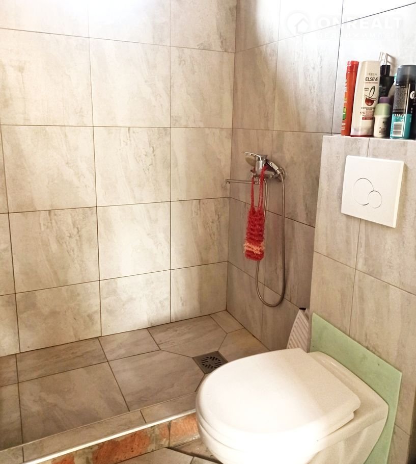 * капитальный гараж 36 кв.м., ворота с подъемным механизмом и хозпостройки 36 кв.м., общий размер 6,5*15 м из кирпича и керамзитобетонных блоков. Над гаражом мансарда 75 кв.м. под жилую застройку, два окна.