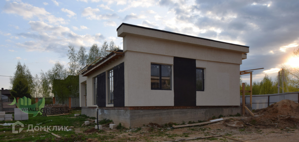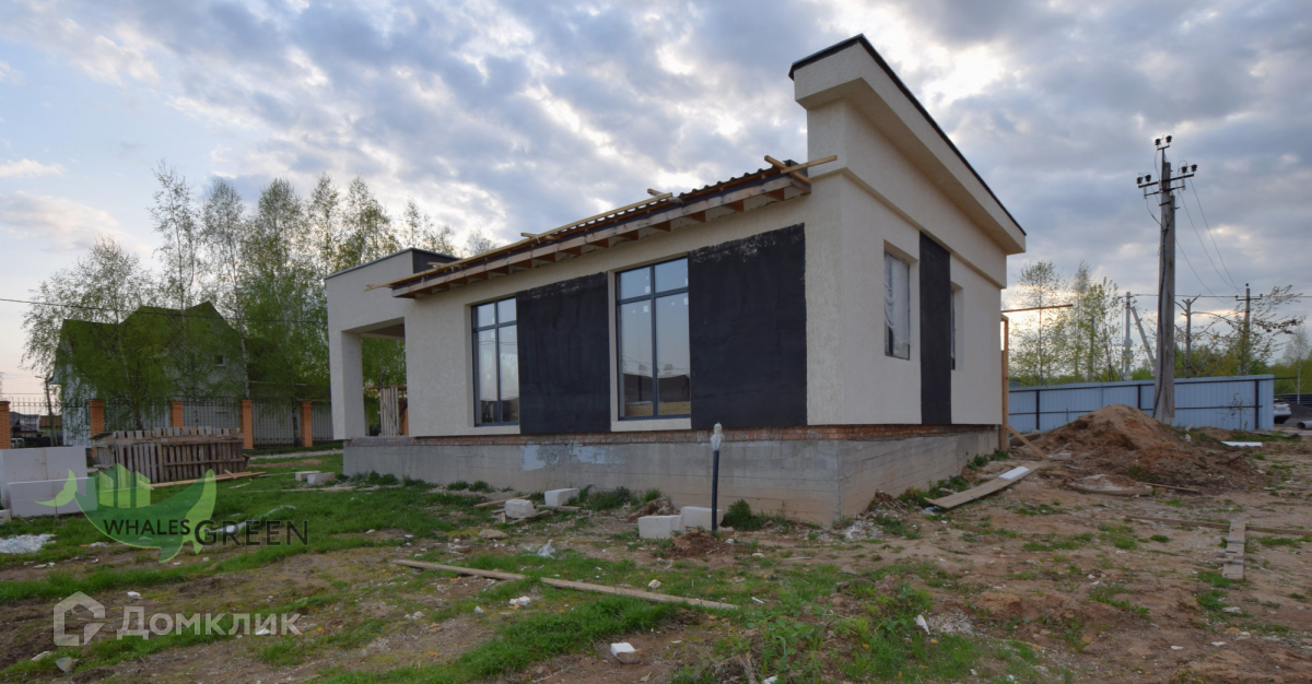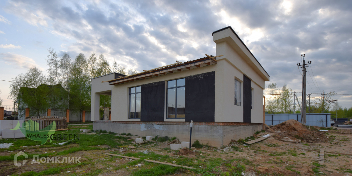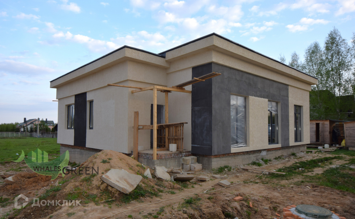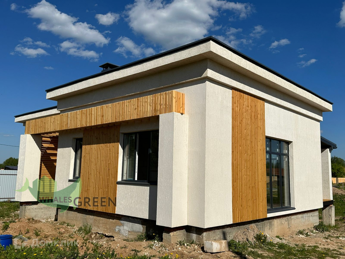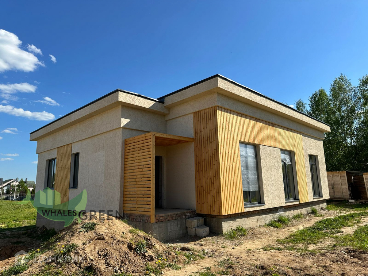 Участки по 9 соток каждый, огорожены. Дом возведен из газобетона. Красивый комбинированный фасад: штукатурка, деревянные элементы, колонны из керамического кирпича. Дом сдаётся в комплектации: коробка с внешней отделкой (фасад, окна, двери). Высокие потолки и панорамные окна. Коммуникации: электричество, септик с подключением. Газ проходит по границе участка. Продуманная планировка - на одном уровне удобно размещено всё, что нужно для комфортной жизни: большая кухня-гостиная с выходом на террасу с мангальной зоной, три изолированные спальни, гардеробная, котельная, санузел.