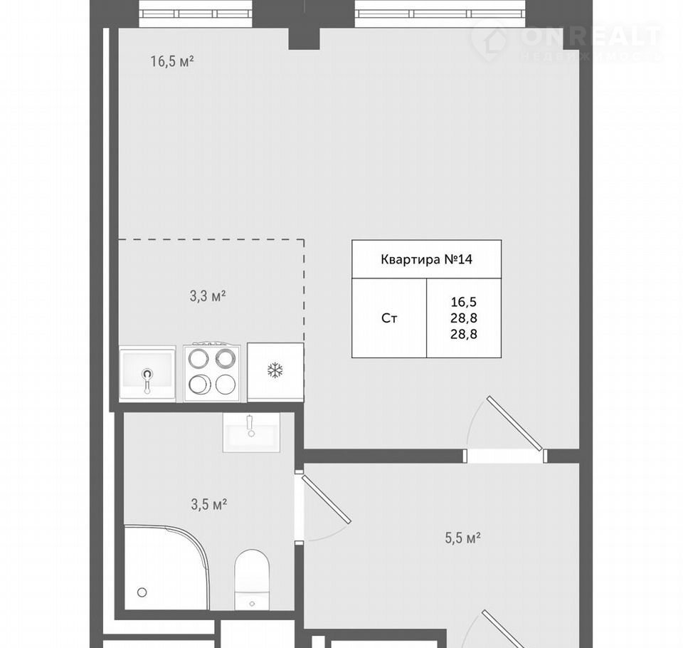 Общая площадь 28.8 м2