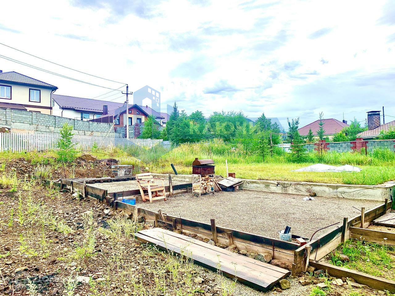 На участке готовый фундамент под баню и веранду.