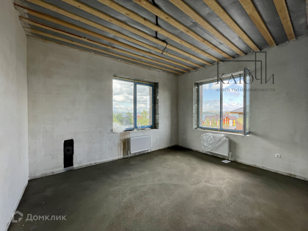 Объект предлагается к покупке в предчистовой отделке: подключен ГАЗ, разведено электричество, вода, канализация, смонтирован теплый пол, полусухая стяжка, стены – гипсовая штукатурка, установлены розетки, выключатели, радиаторы. Котельная полностью смонтирована. Дом отапливается, застройщик начал выполнять финишную отделку. На участке имеется место под гараж на 2 автомобиля.