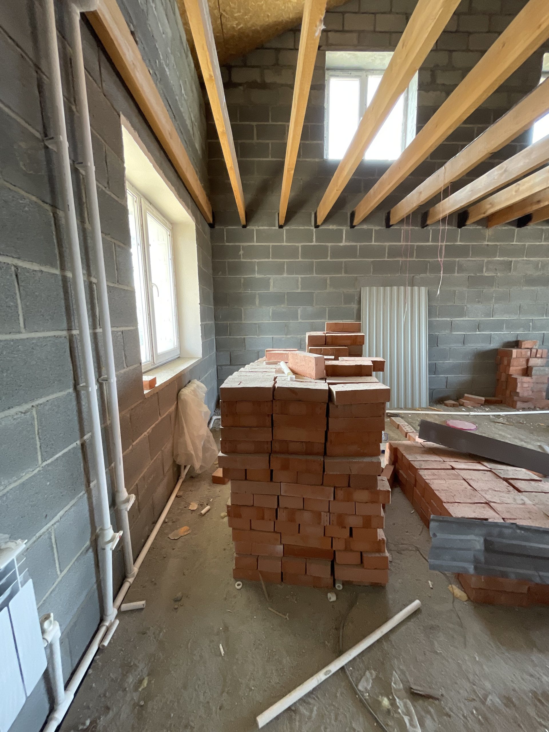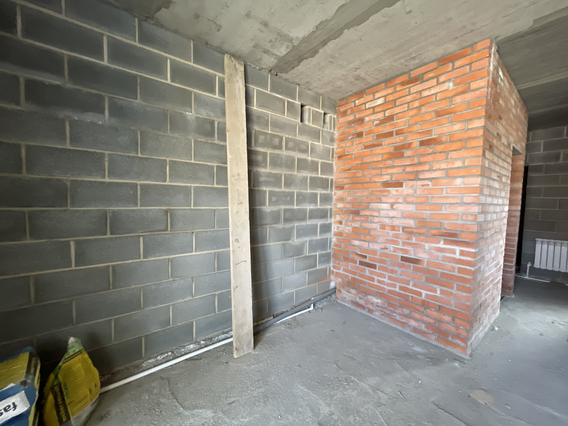 Отделка черновая, установлены радиаторы отопления. Мангальная зона отсыпана речной галькой. Крайний блок с земельным участком. Земля в собственности.