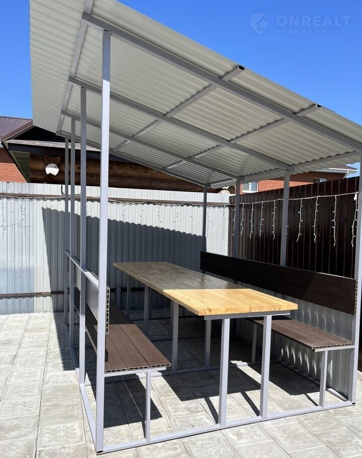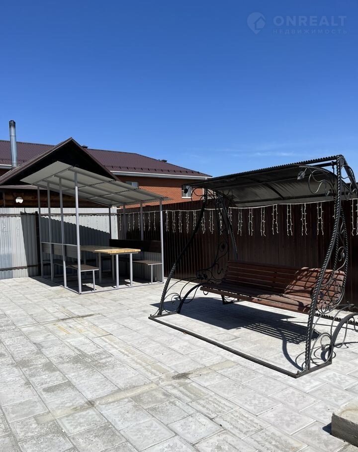 Во дворе беседка, большая качеля, мангал