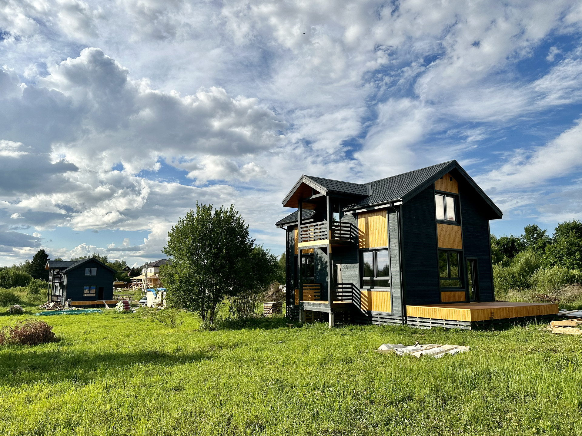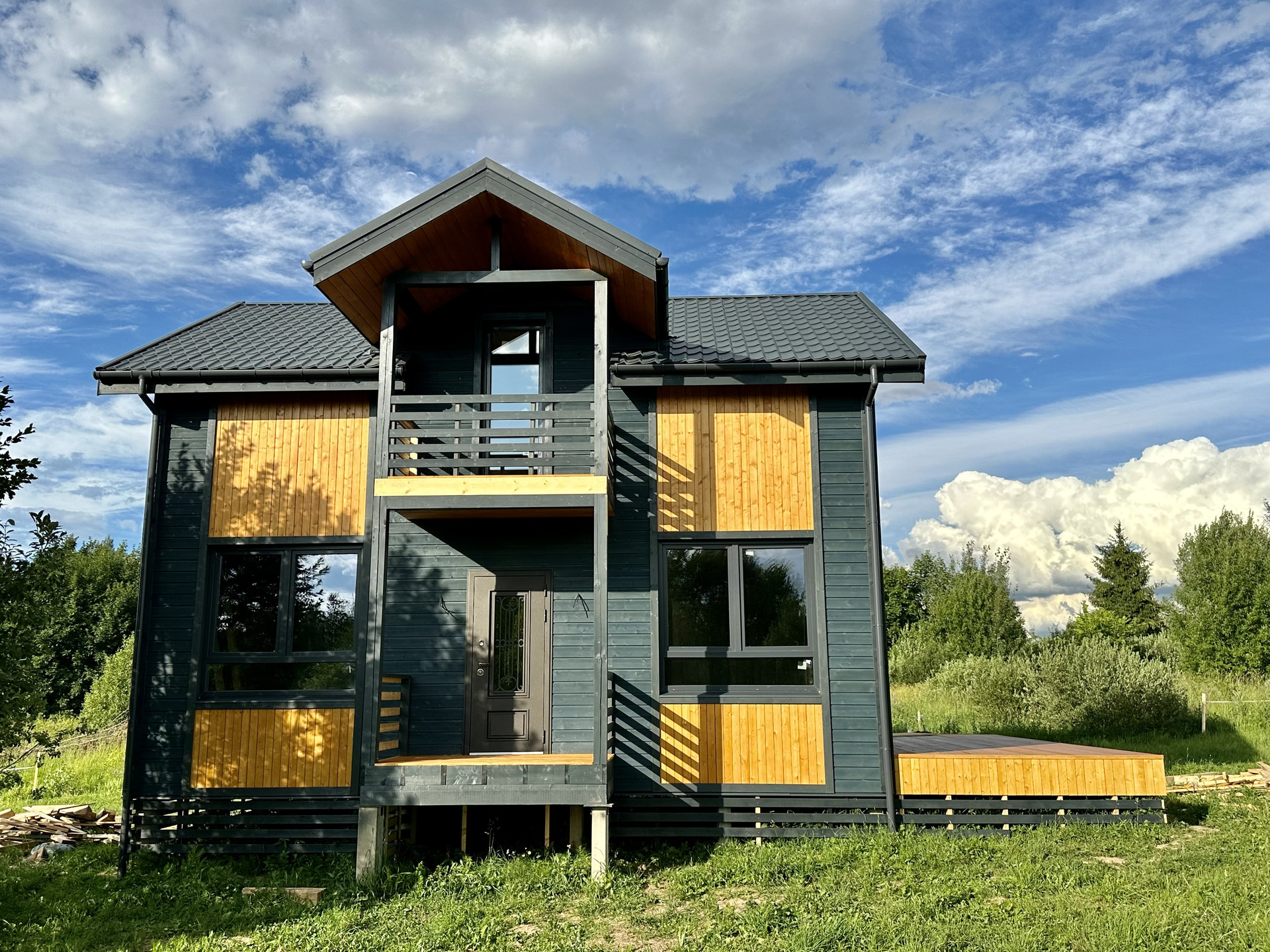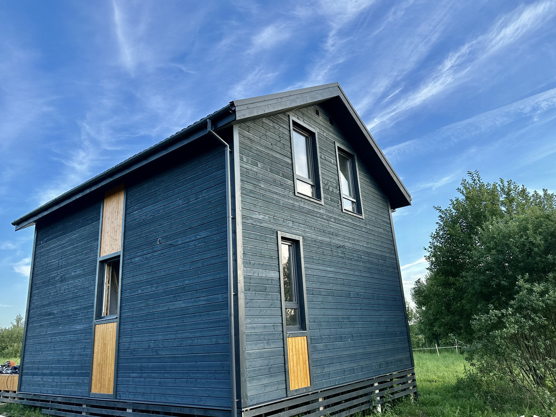 Использовалась доска камерной сушки, премиальные мембраны, качественный металл кровли, дорогие материалы отделки, премиальный утеплитель высокой плотности, электрика и сантехника проведены скрыто в строгом соответствии с ГОСТ.