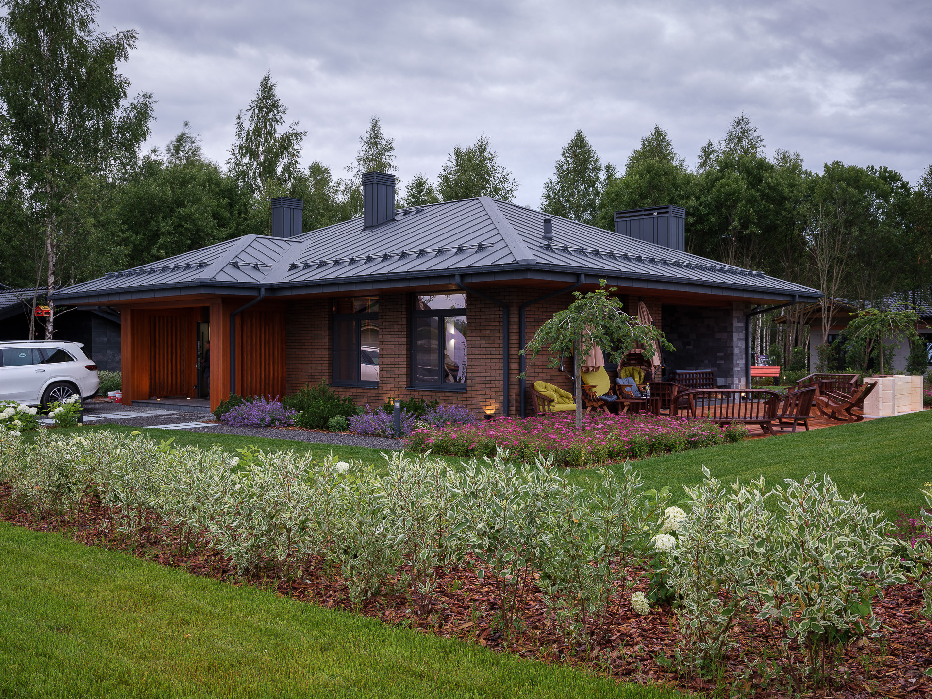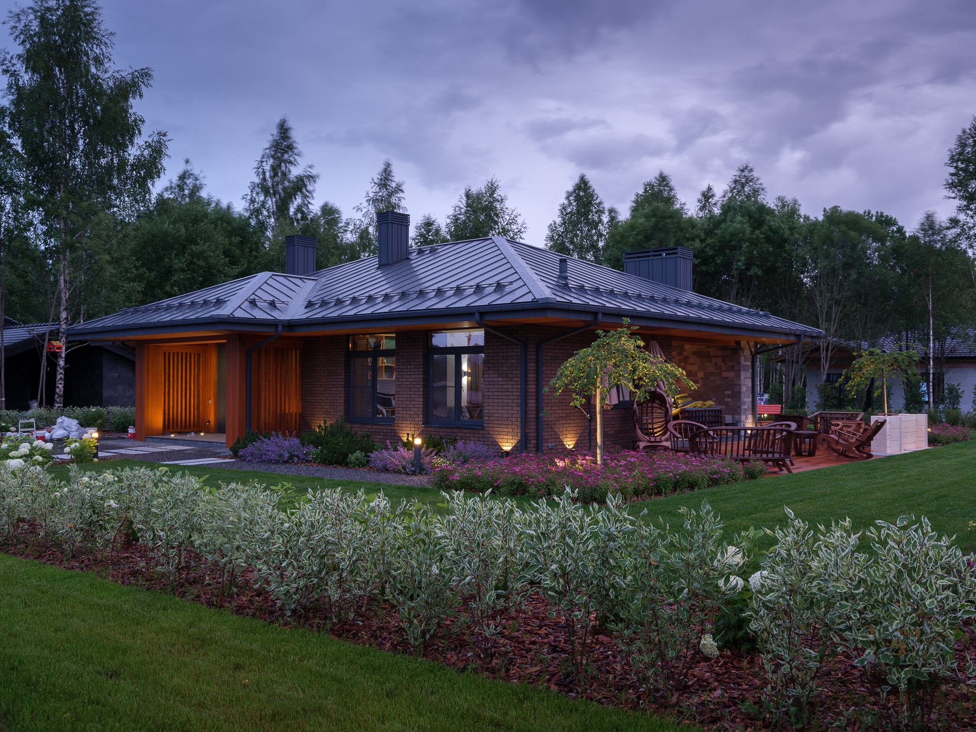 Идея лаконичного ландшафта, стиль и дизайн взаимосвязаны и воплощают красивую картину жизни за городом.