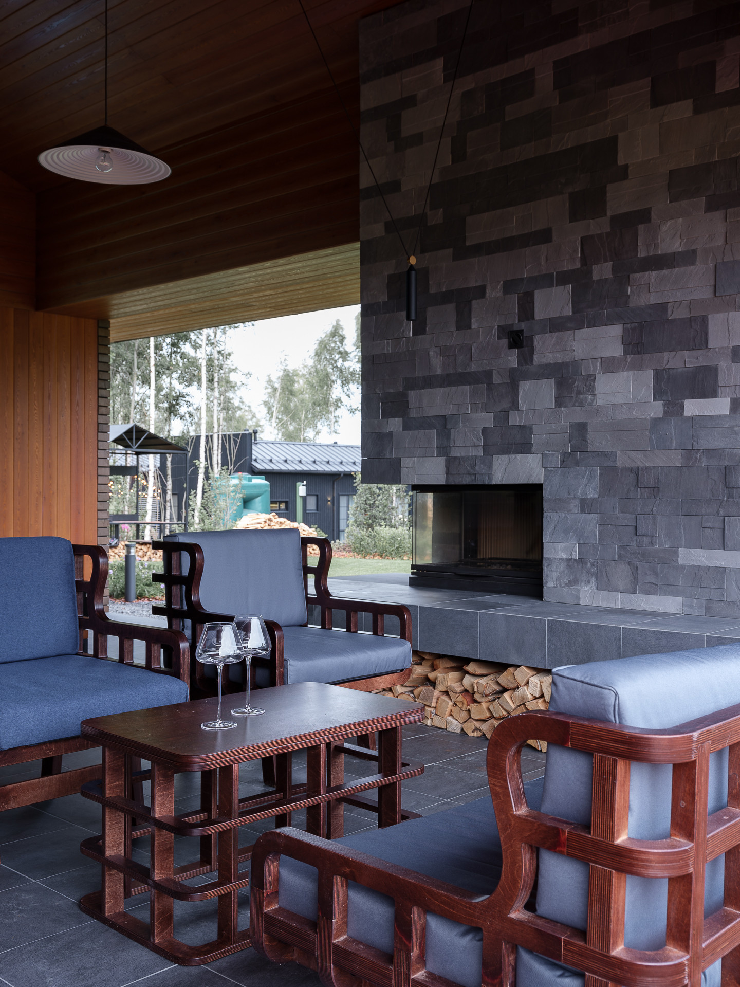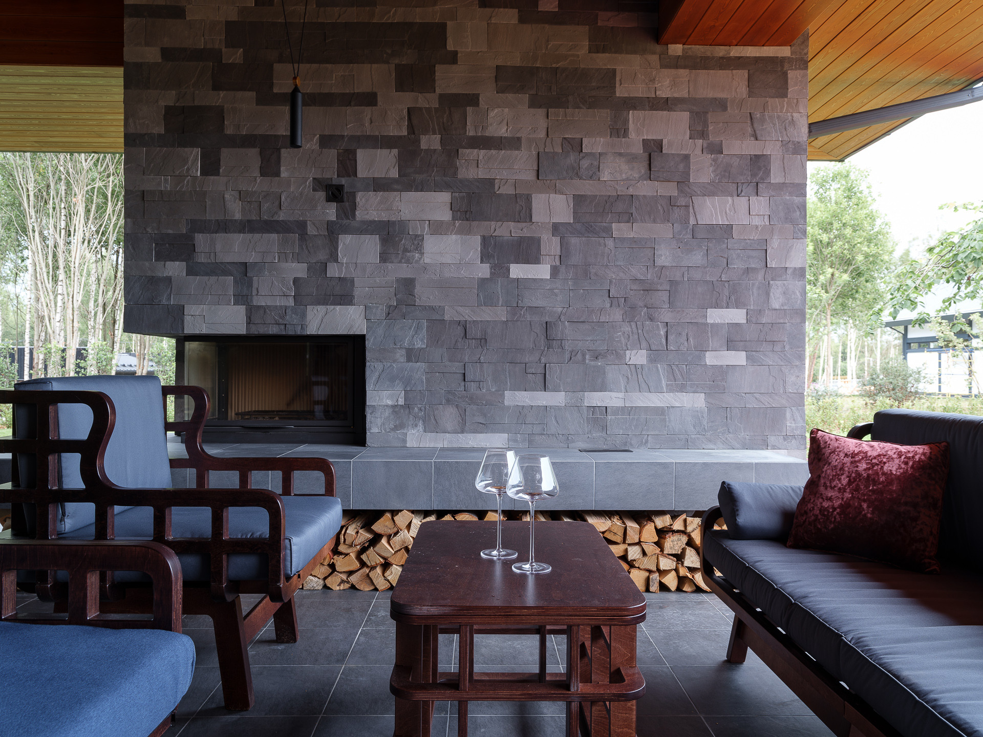 Встроенная в дом терраса с камином и домашним кинотеатром, —воплощение творческого подхода архитектора. Объединенная единой крышей, она является гармоничным продолжением внутреннего пространства и преображает вашу действительность. Утром вы можете насладиться здесь завтраком на свежем воздухе, а вечером расслабиться благодаря пламени камина и фильму на экране кинотеатра.