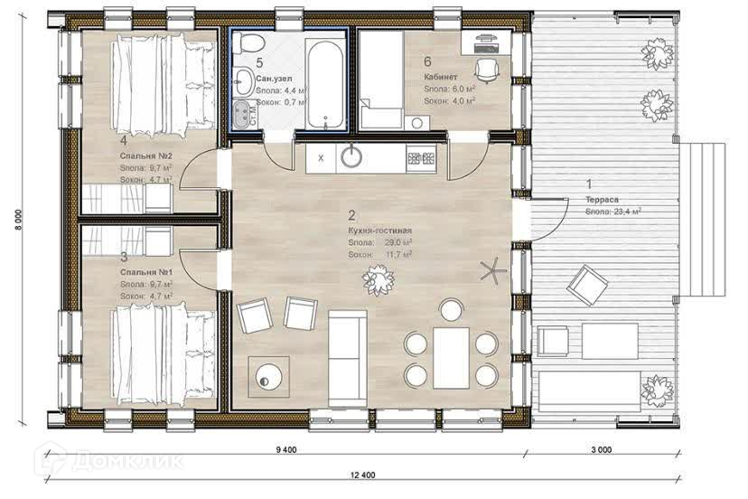 Общая площадь 86.6 м2