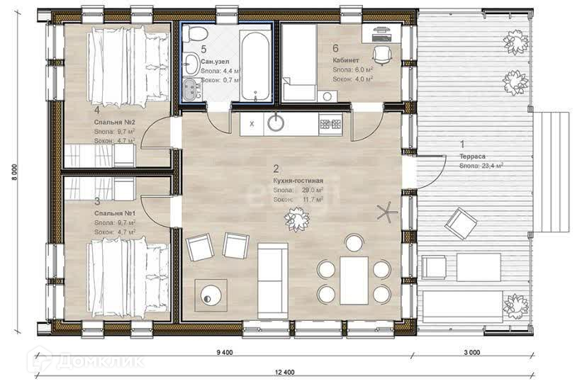 - 2 спальни
