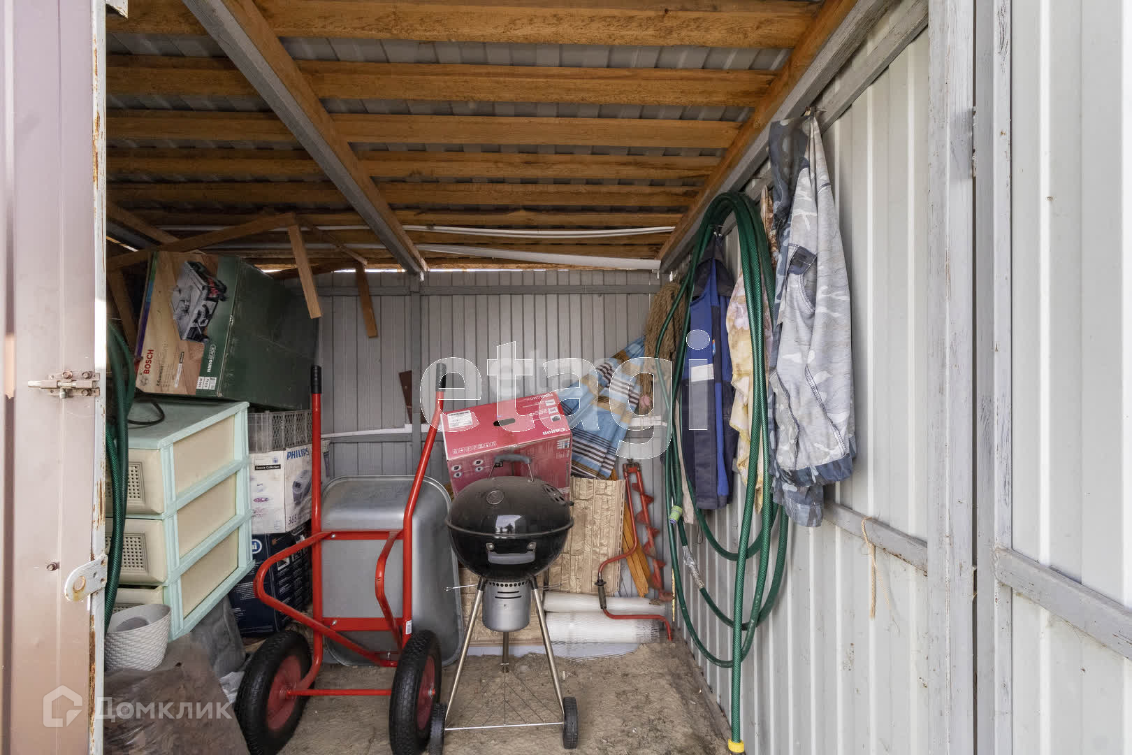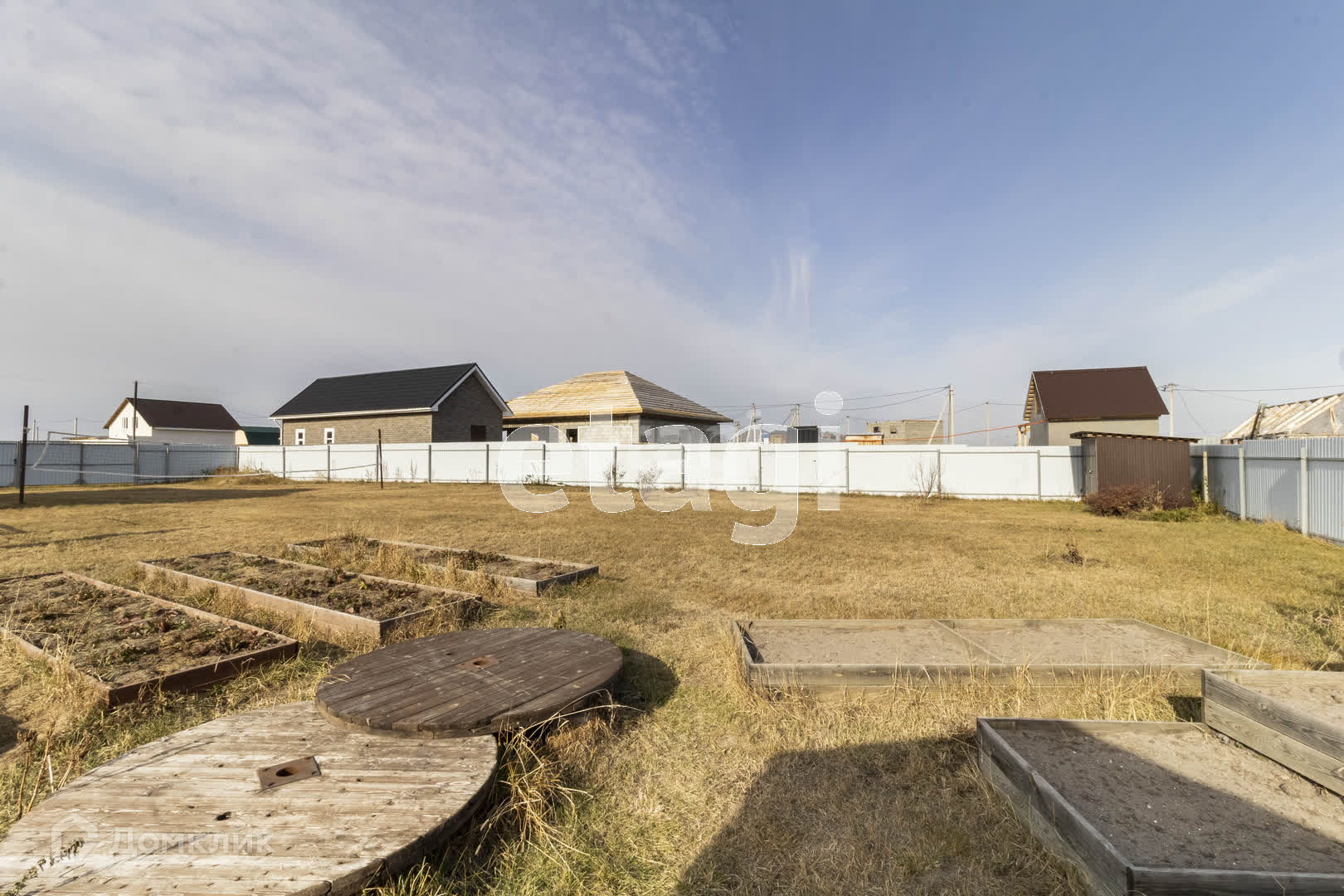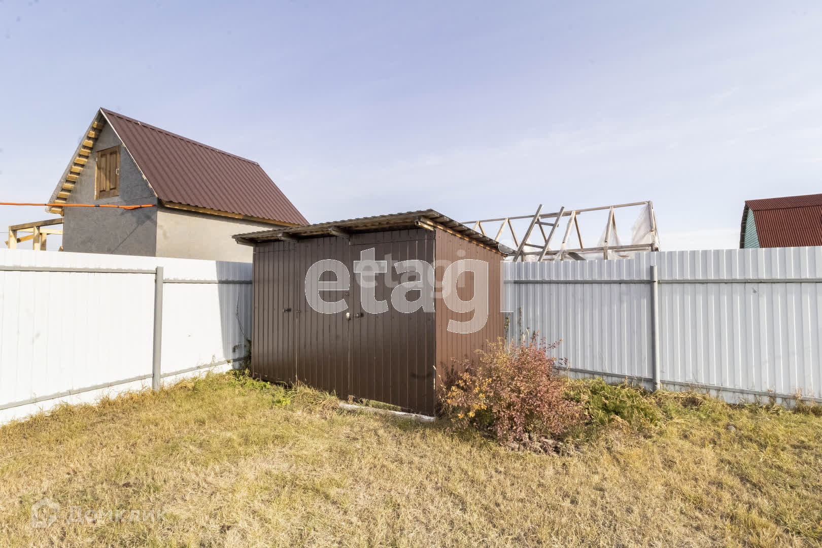 Участок огорожен со всех сторон, установлены ворота и калитка. На участке есть хозблок с уличным туалетом, теплица, сделаны грядки. На участке растёт машина, клубника, голубика, черная и красная смородина, шиповник, яблони Медуница и Антоновка, сливы, груша, вишня. Также выполнено декоративное ландшафтное озеленение.