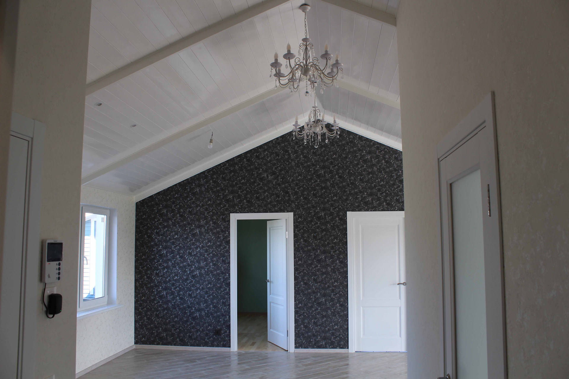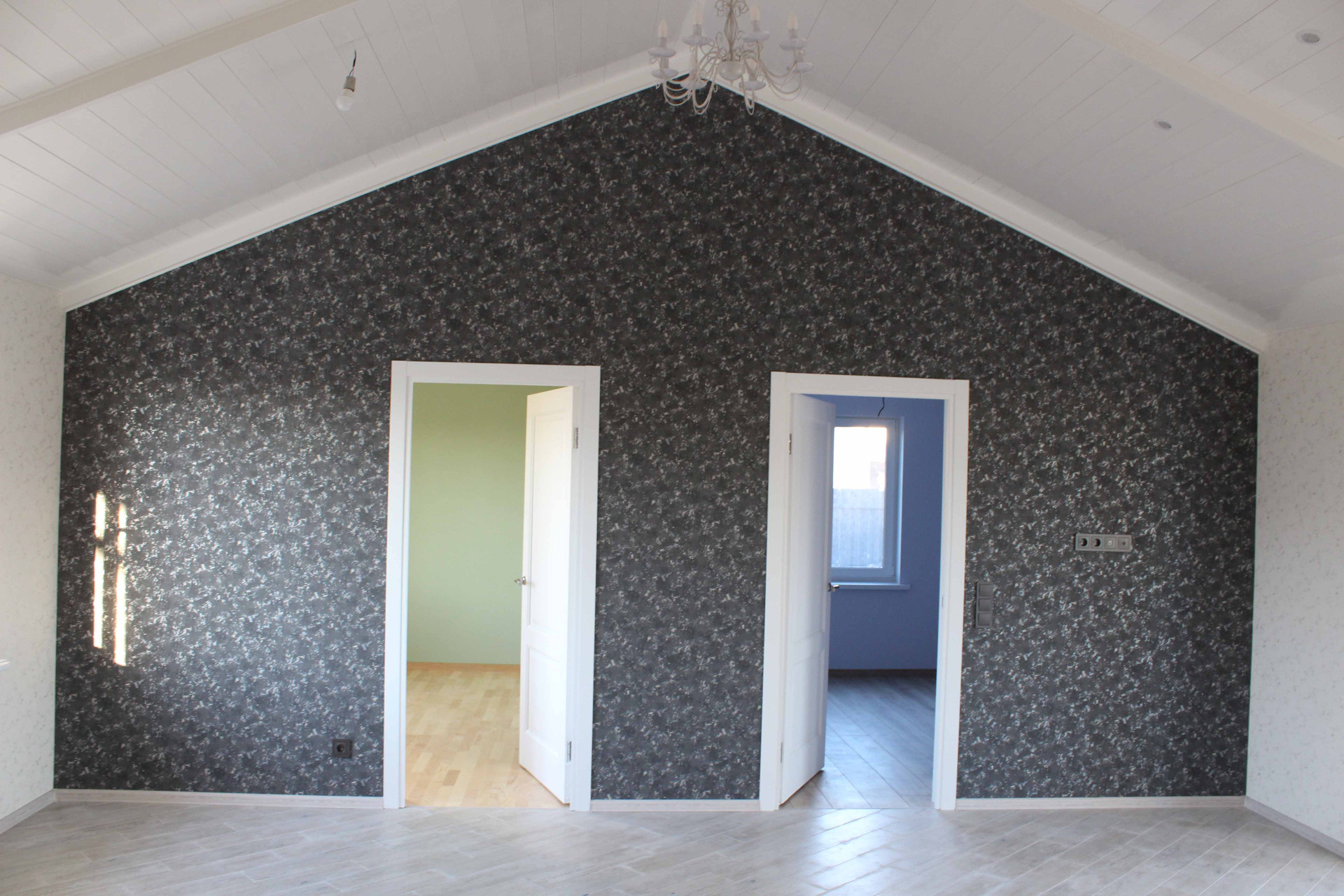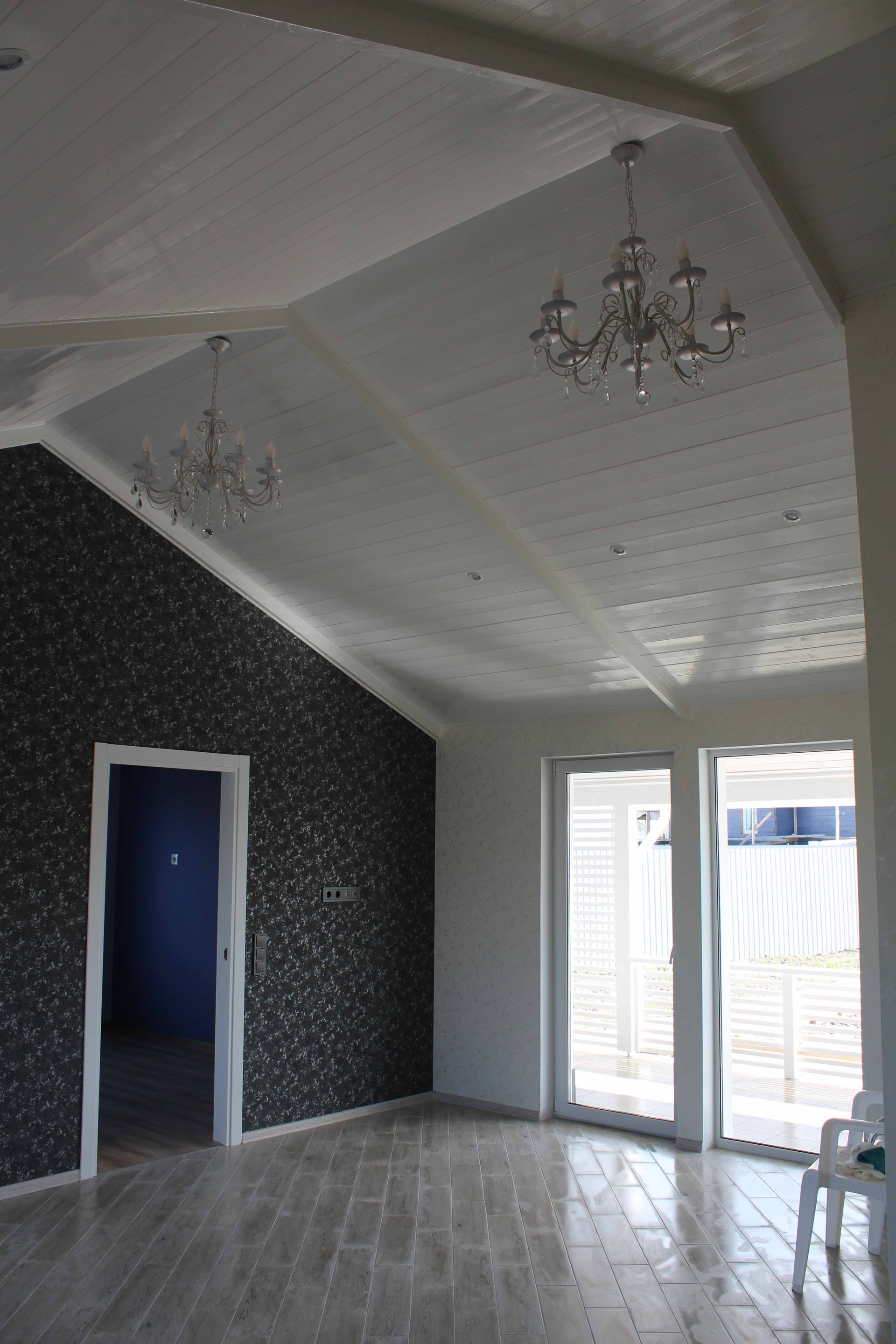 7. Отделка шпаклевка по гипроку, обои, потолки ГКЛ с покраской и вагонка, пол - кафель и паркет