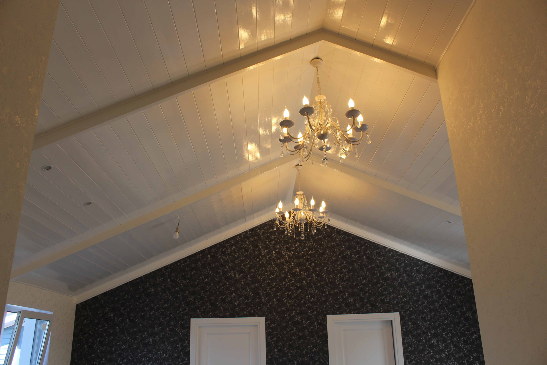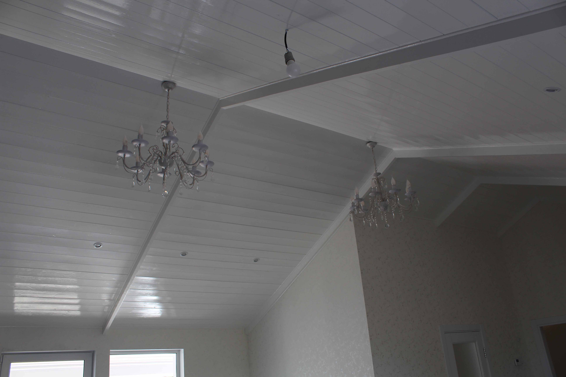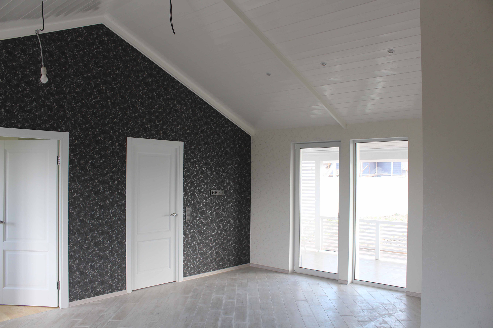 7. Отделка шпаклевка по гипроку, обои, потолки ГКЛ с покраской и вагонка, пол - кафель и паркет