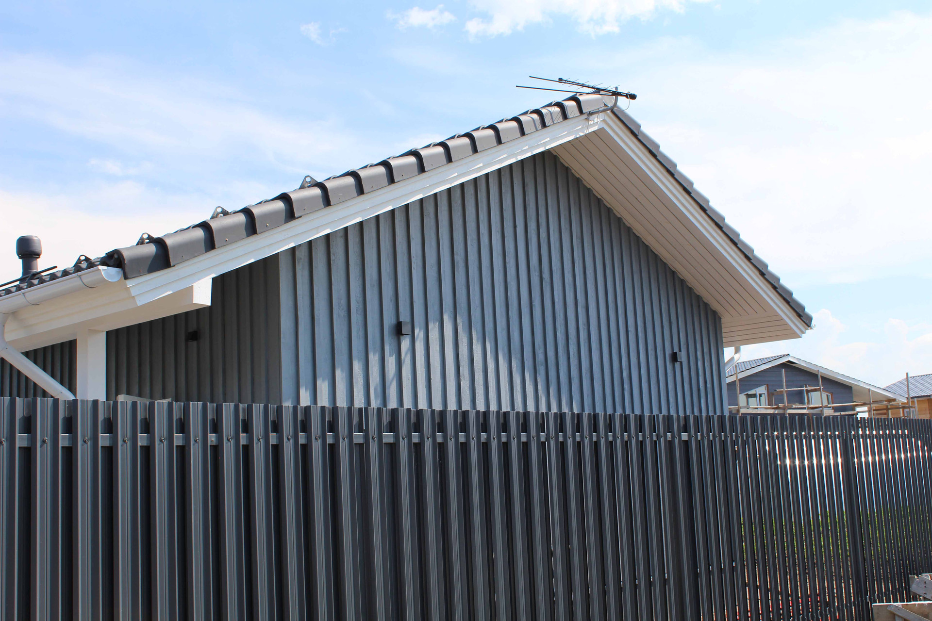 25. Материал кровли - цементно-песчаная черепица. Есть снегозадержание.