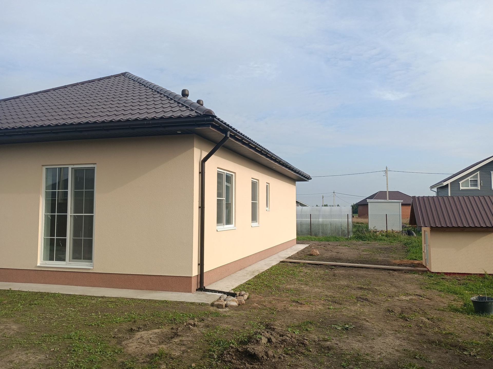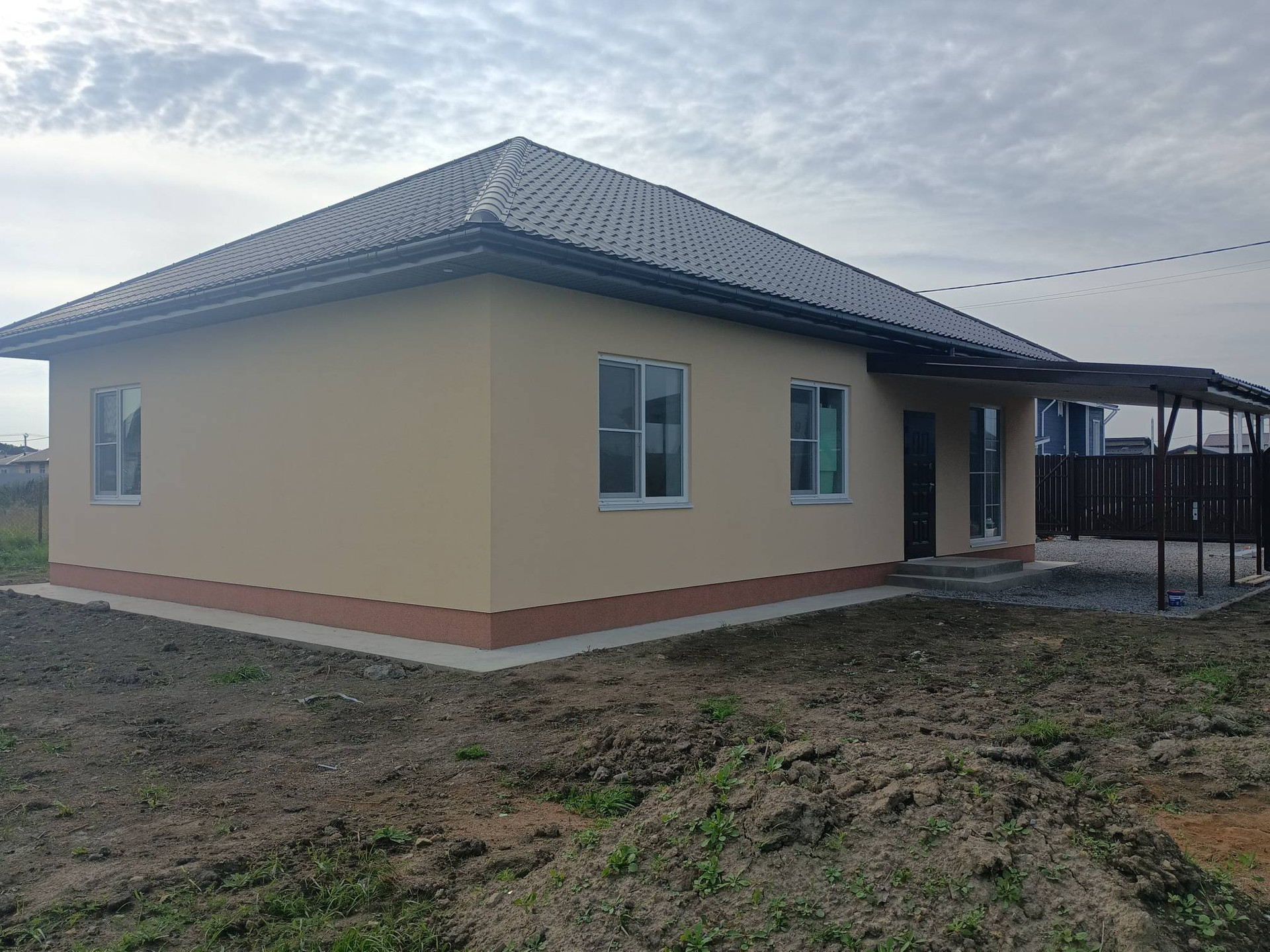 1. Одноэтажный дом 100 м.кв. с 3 комнатами и кухней гостиной 30 м.кв. плюс терраса 20 квадратов