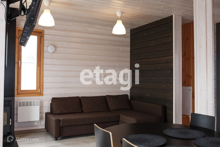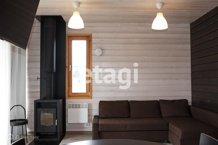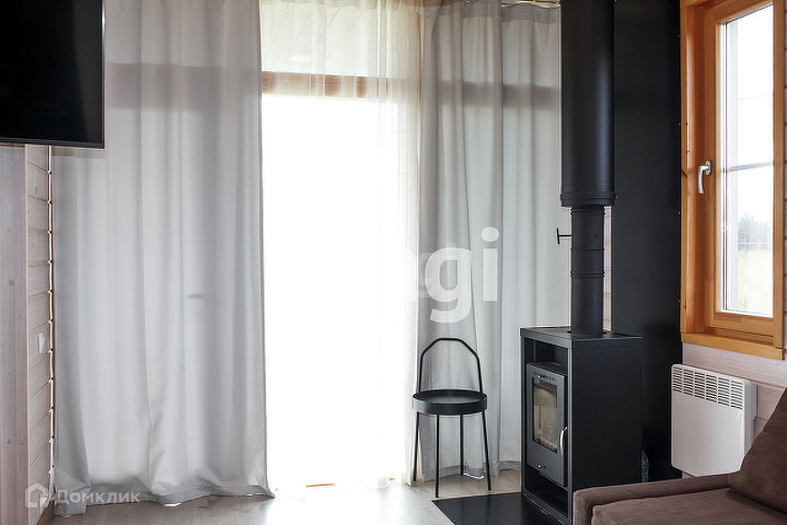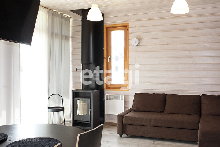 Доп. описание: отопление: электрическое, канализация: септик, также имеются: камин, кухонный гарнитур, шкаф-купе, плита, мягкая мебель