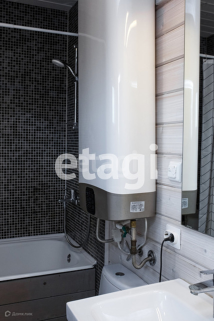 Санузел — керамическая плитка-мозаика пёстрая серая