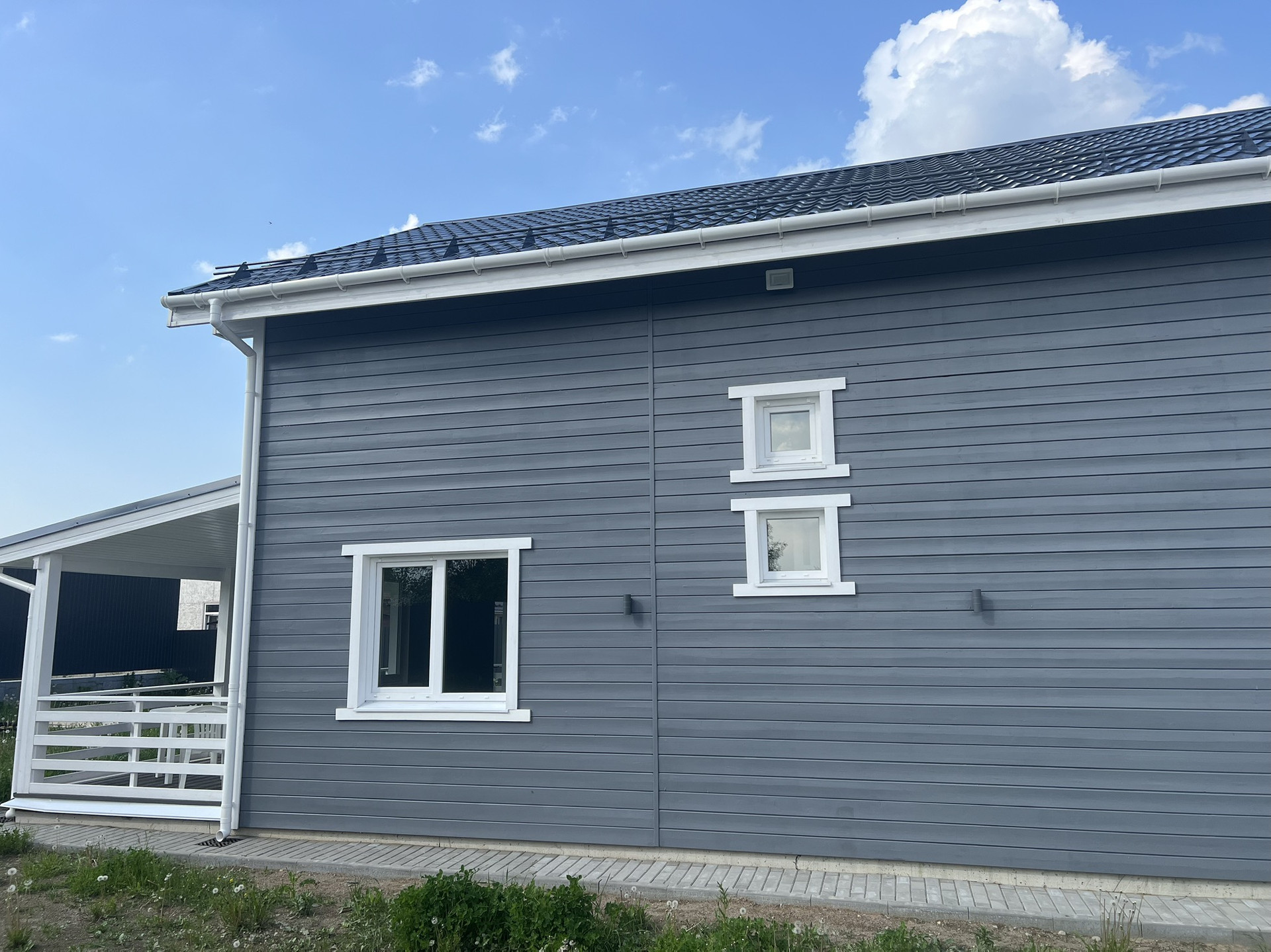 Индивидуальный жилой дом для круглогодичного проживания, размером 8,5*9 (12) метров, общей площадью 128,9 кв.м., на участке площадью 11,74 соток. Дом деревянной каркасной конструкции с двускатной крышей (металлочерепица), снаружи отделан имитацией бруса. Стены из 150мм доски с перекрестным утеплением. Стропила крыши из 200мм доски с перекрестным утеплением. Этажей 2 (2-й этаж мансардный), фундаментная бетонная плита, локальная канализация с септиком 1.5 куб.м. и колодцем полифильтрации, водоснабжение: скважина на участке, электричество 15 кВт. Вентиляция пассивная. Отопление 1 этажа- водяной теплый пол, отопление 2 этажа – стальные водяные радиаторы R22, все питается от электрического котла 12 кВт, в системе залит термагент до минус 30гр. В электрощите дифф.автоматы на каждой фазе. Пол 1 этажа- керамогранит, пол 2 этажа – ламинат 34кл. Сделано фасадное освещение и отдельно освещение участка. Участок полностью обнесен забором (профлист), установлены откатные ворота с автоматикой и отдельная калитка. Вокруг дома установлена ливневая канализация. Перед домом зона парковки вымощена брусчаткой. На въезде установлен бетонный пандус. На участке имеется хоз.постройка с электропитанием.