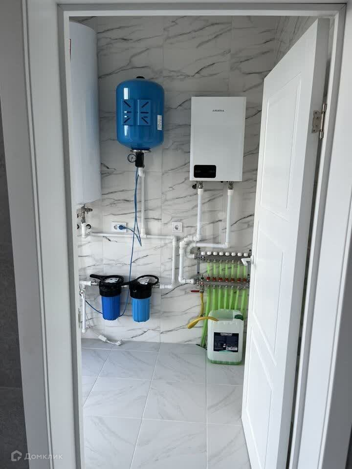Планировка: 3 спальни площадью 10.5 м.кв.,12.07 м.кв. и 16.92 м.кв. Два санузла, котельная, кухня гостиная, прихожая. Отопление теплый водяной пол по всей жилой площади с полусухой стяжкой. Станция биологической очистки. Скважина. Внутри отделка стен гипсокартон и обои с покраской. На полу везде керамогранит кроме спален,в них ламинат 33 класса. Стены в санузлах и котельной керамогранит, плюс вся сантехника в санузлах.