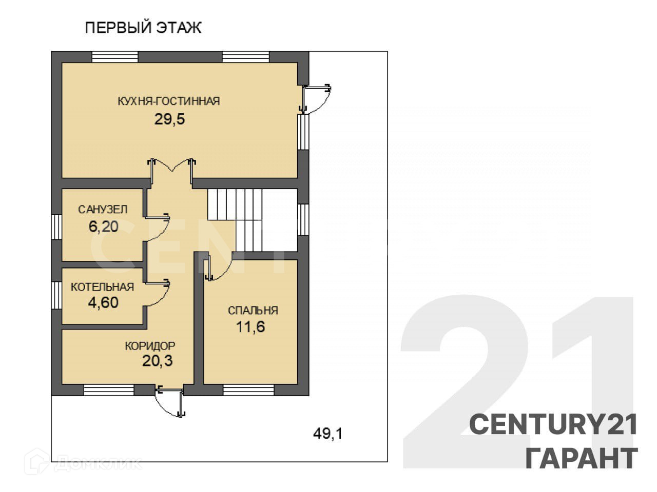 На первом этаже совмещенный санузел 6.20 м2 с душевой кабиной, и котельная.