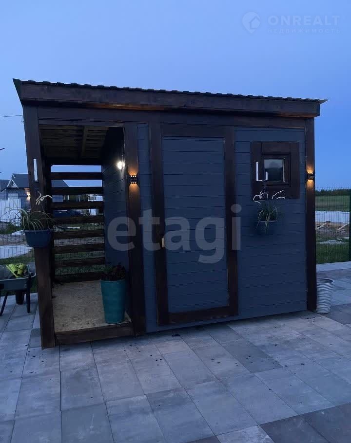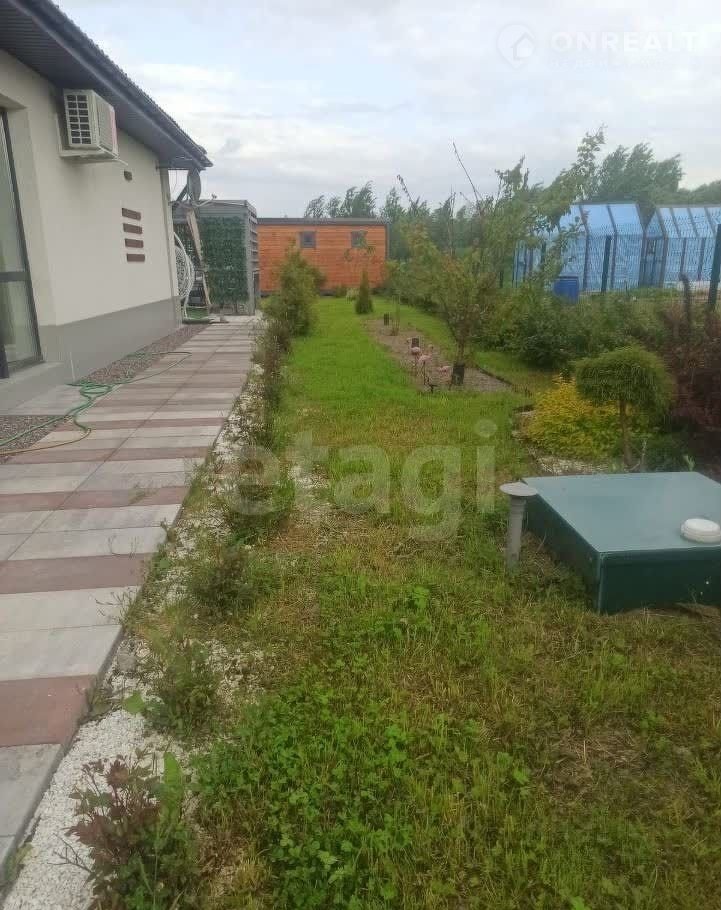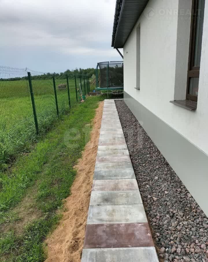 Участок благоустроен: по периметру установлен забор с двумя калитками и откатными воротами с дистанционным управлением. На территории расположена баня размером 8×2 м, беседка с зоной отдыха и качелями, парковочное место и хозяйственный блок. Дорожки вокруг дома выложены тротуарной плиткой, территория украшена декоративными растениями. Дом находится в отличном состоянии, все коммуникации функционируют без нареканий.
