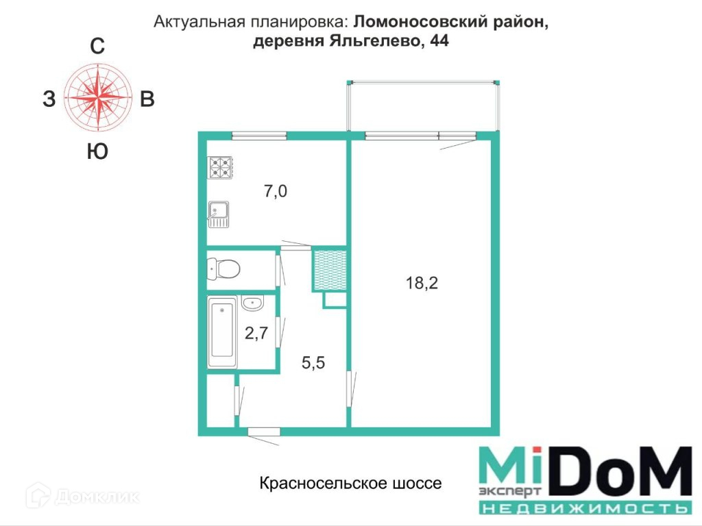1-комнатная квартира, 35 м2, этаж 3 / 5, на продажу в деревне Яльгелево, деревня Яльгелево, 44