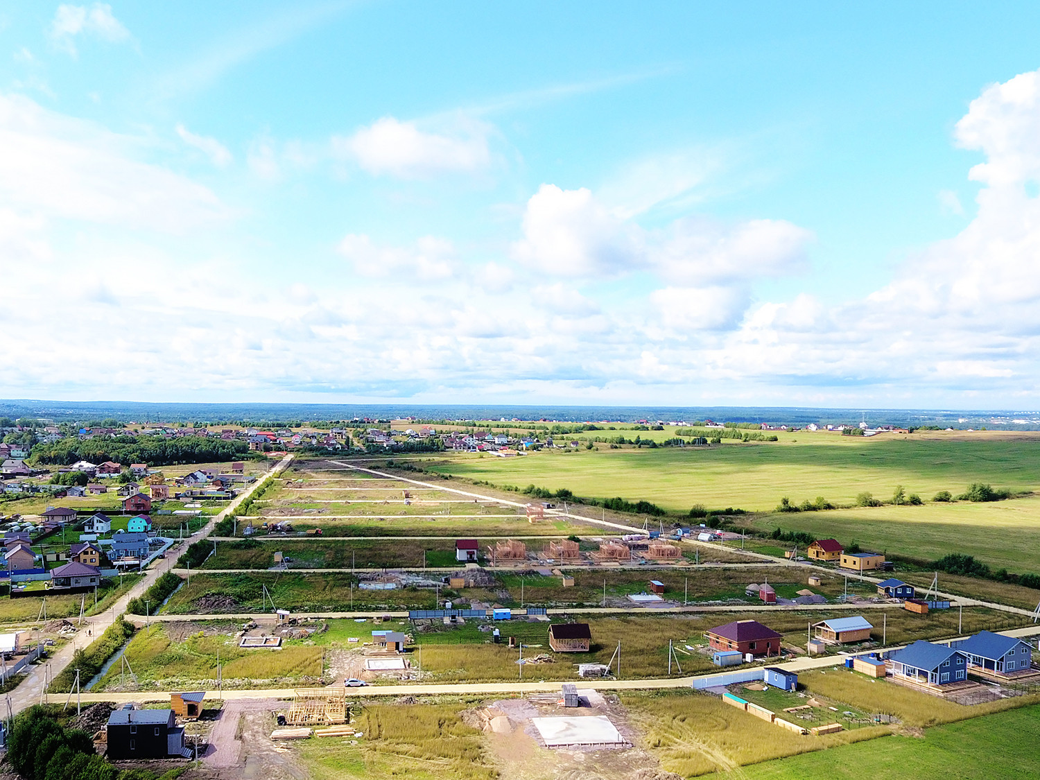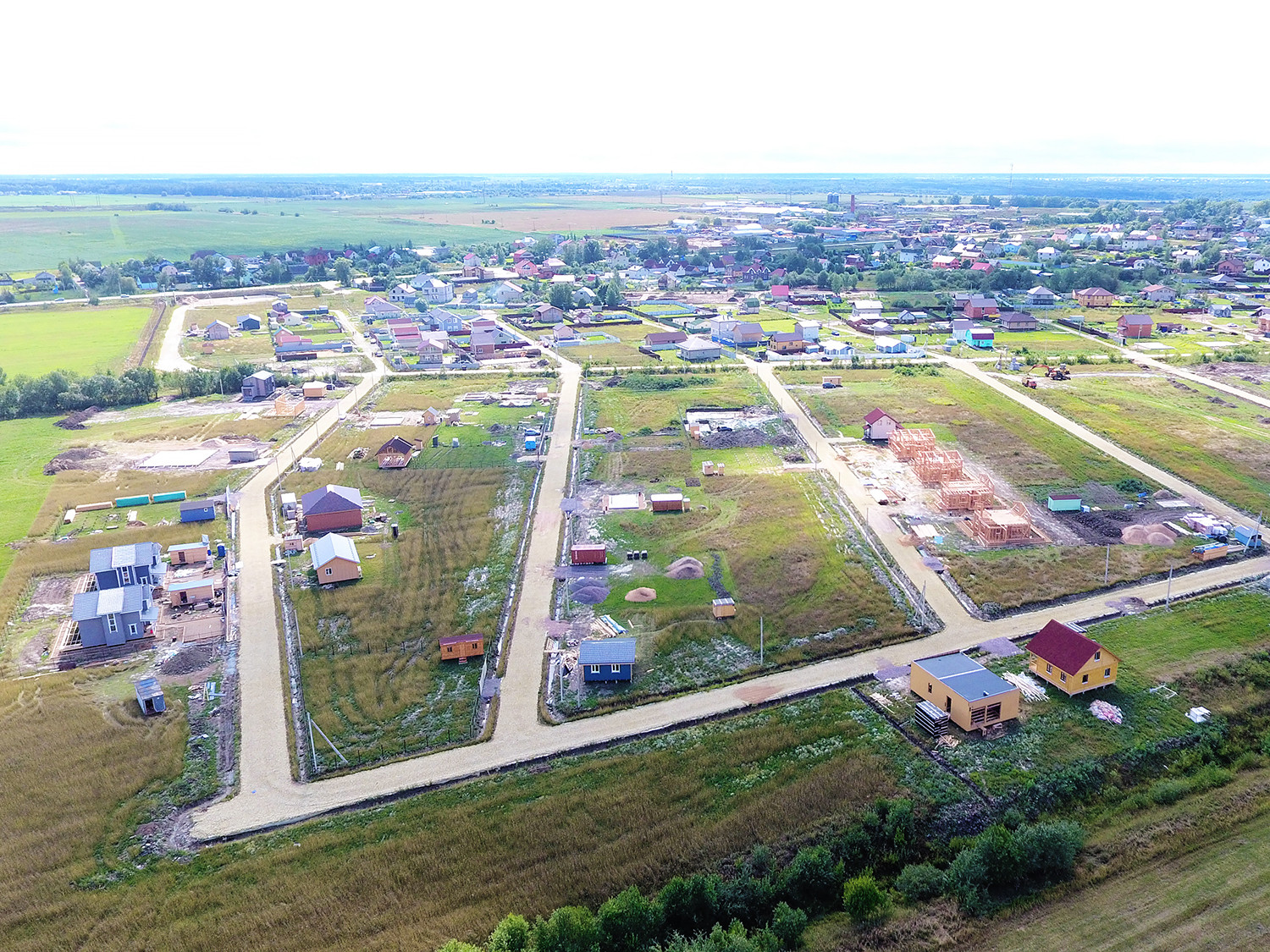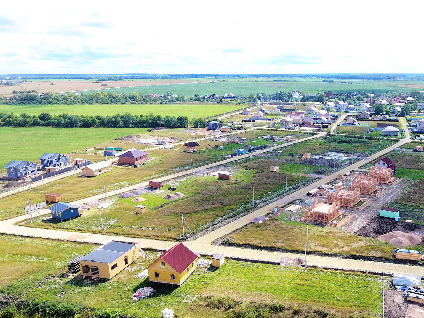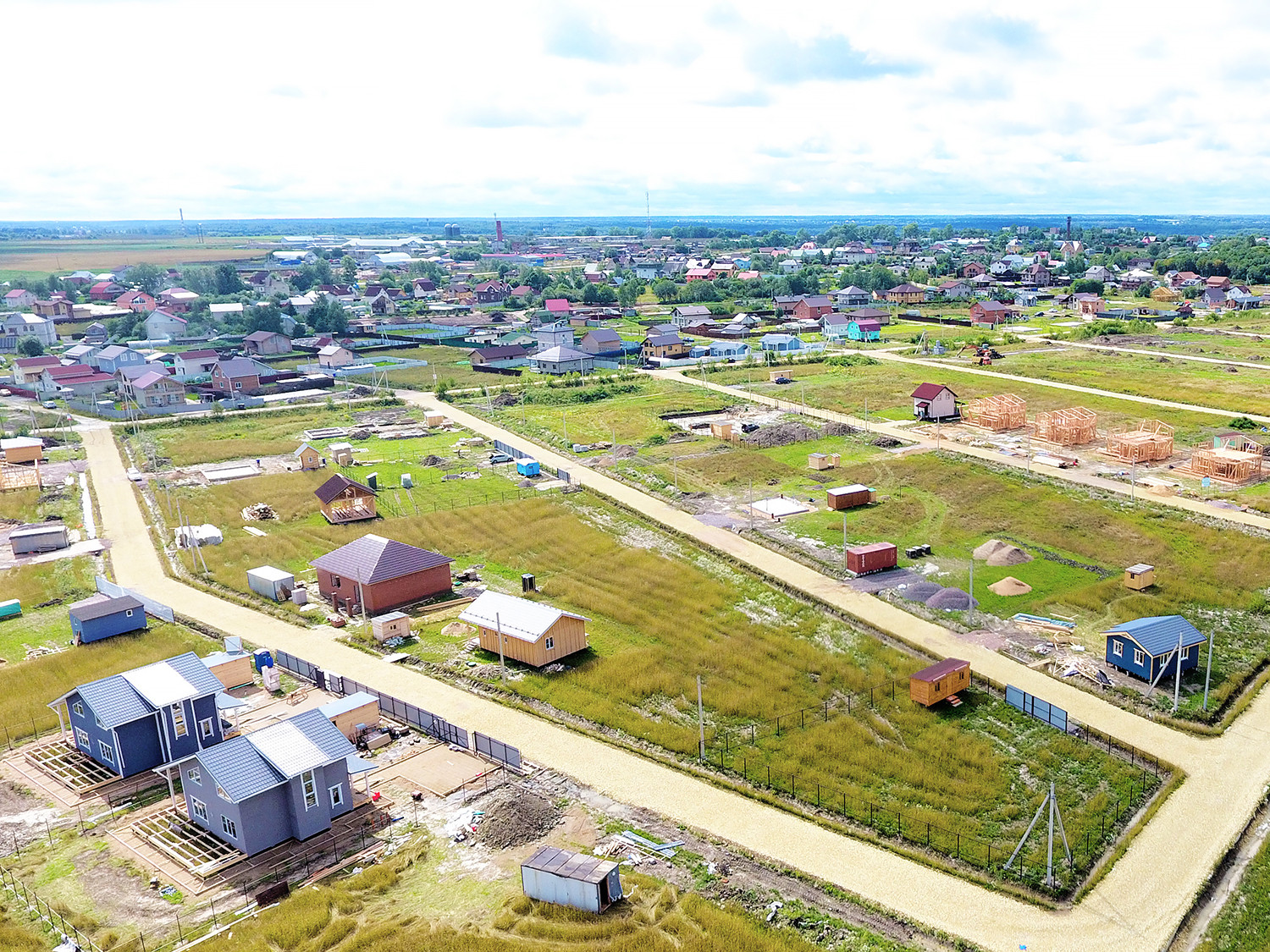 В коттеджном поселке электричество, хорошие дороги, дренаж вдоль дорог, уличное освещение.