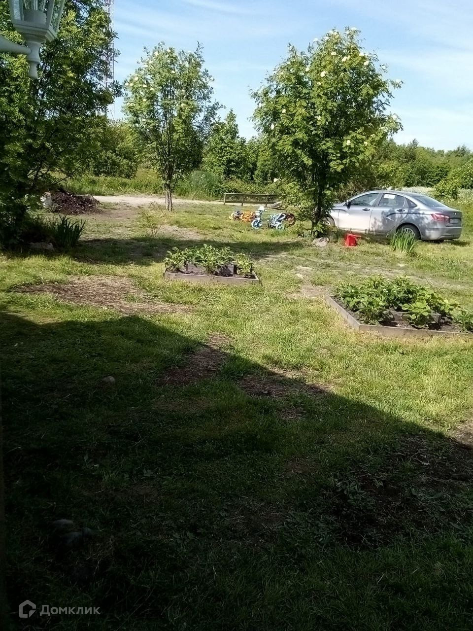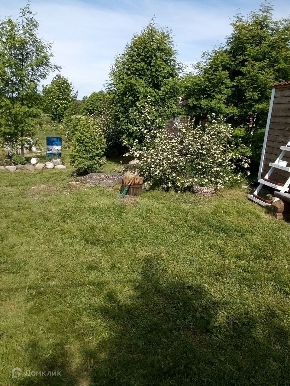 Участок выровнен, облагорожен, высажены кусты черноплодной рябины, вишни, сливы, ирги, крыжовника, клубники, декоративные кусты и цветы.