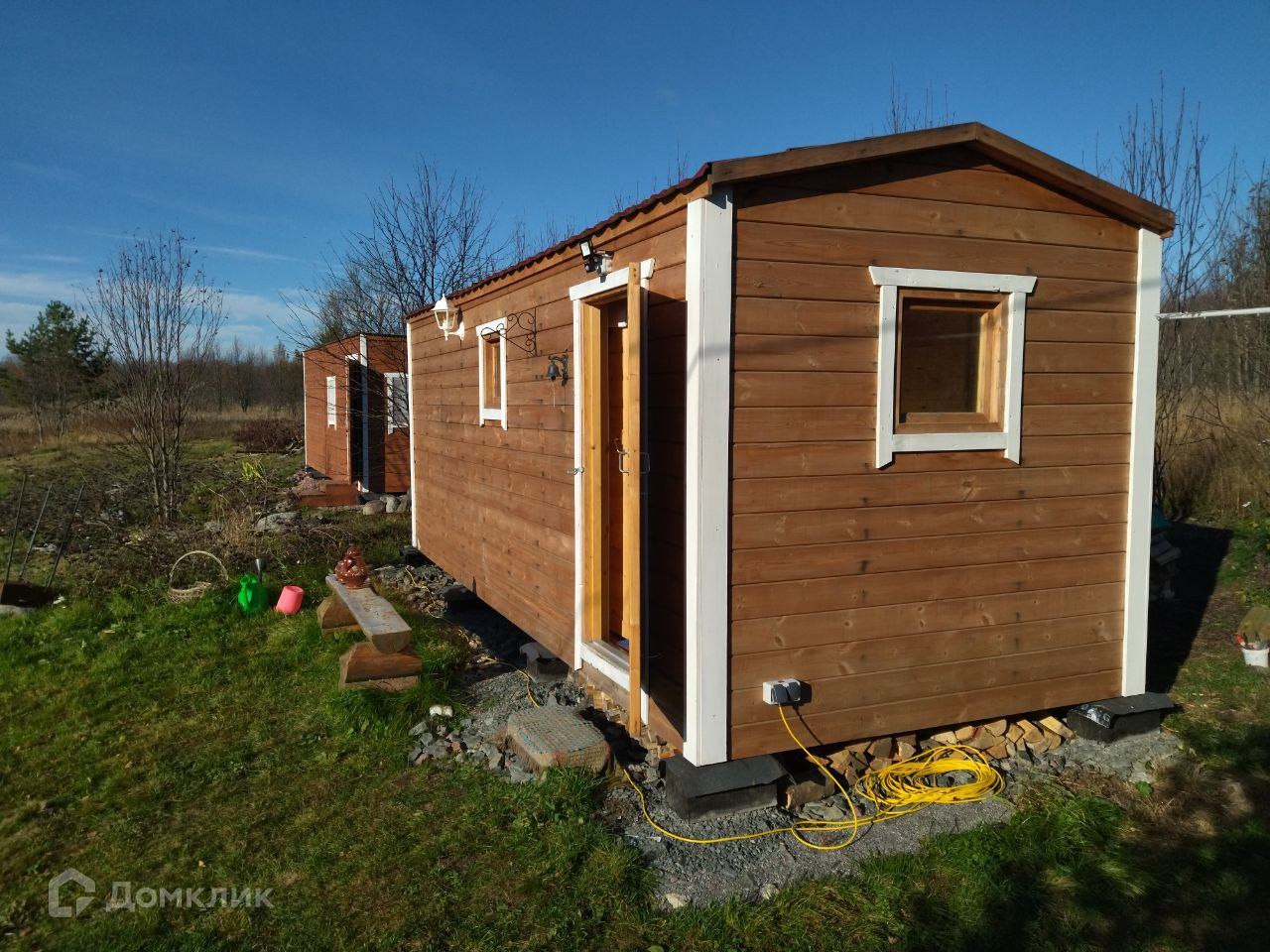 Во втором домике также располагаются коридор, кухня - комната. Два спальных места.