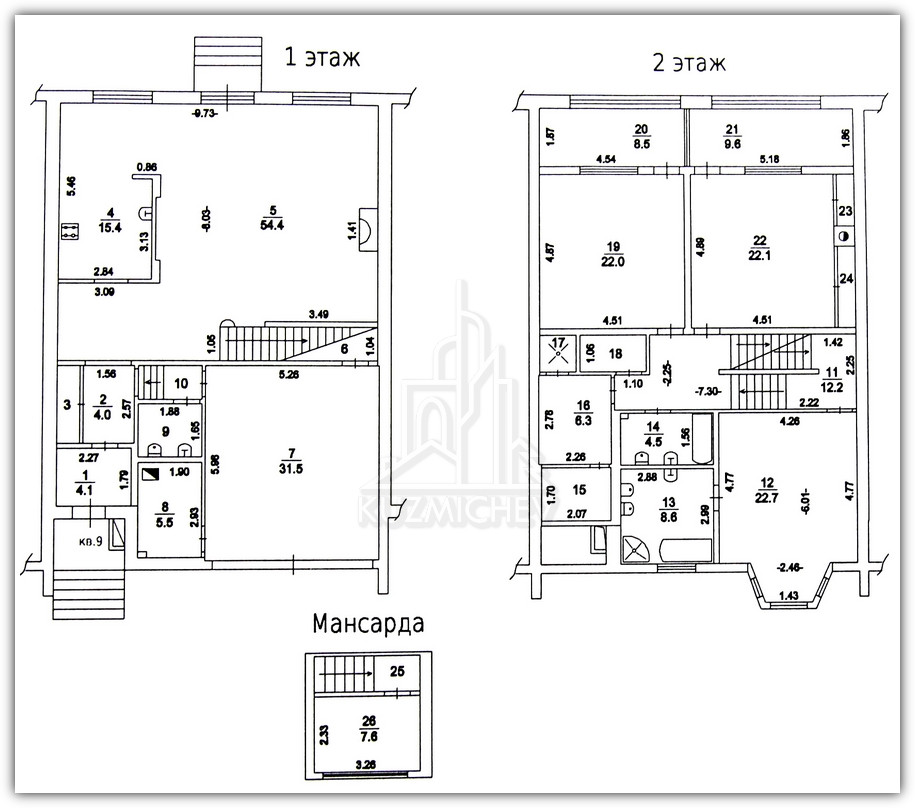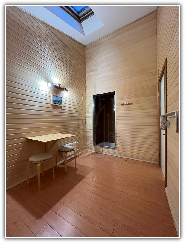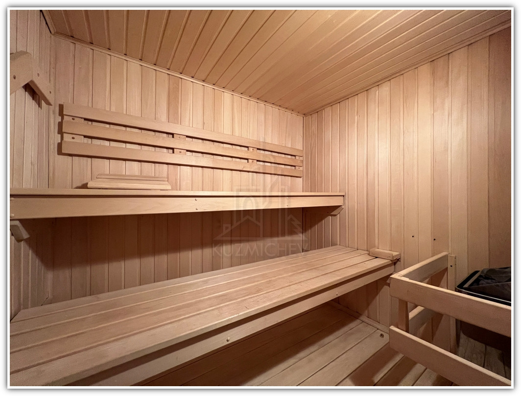 2 этаж: Хозяйская спальня- 23 кв.м. с эркером и со своим санузлом- 9 кв.м., изолированные спальни- 22 кв.м. и 22 кв.м. со своими выходами на огромную отапливаемую застекленную веранду- 17 кв.м., санузел- 4 кв.м., сауна с комнатой отдыха и душем- 11 кв.м., кладовка- 2 кв.м.;